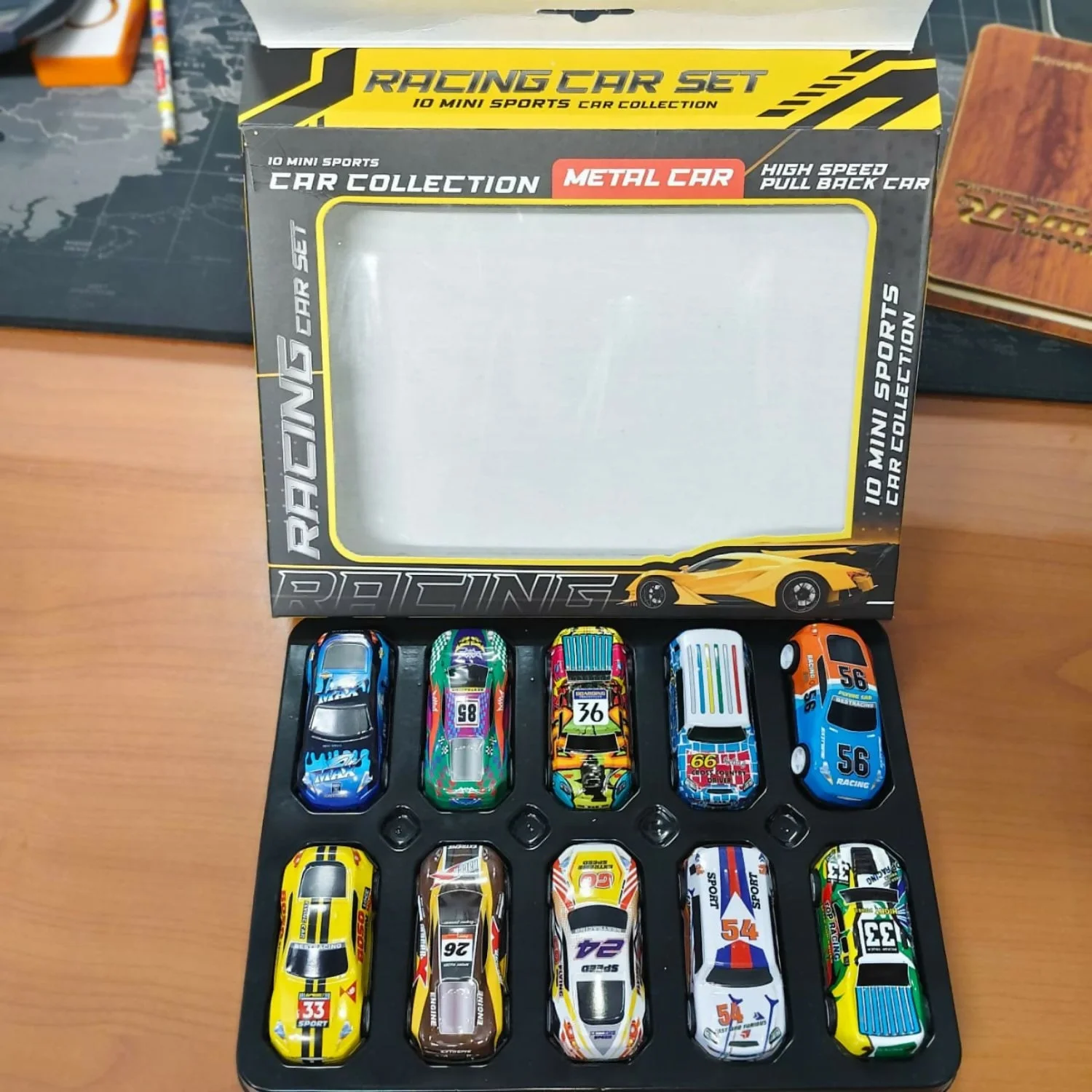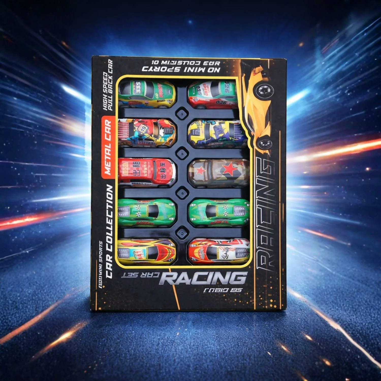 Premium metal racing car set includes 10 colorful mini sports cars