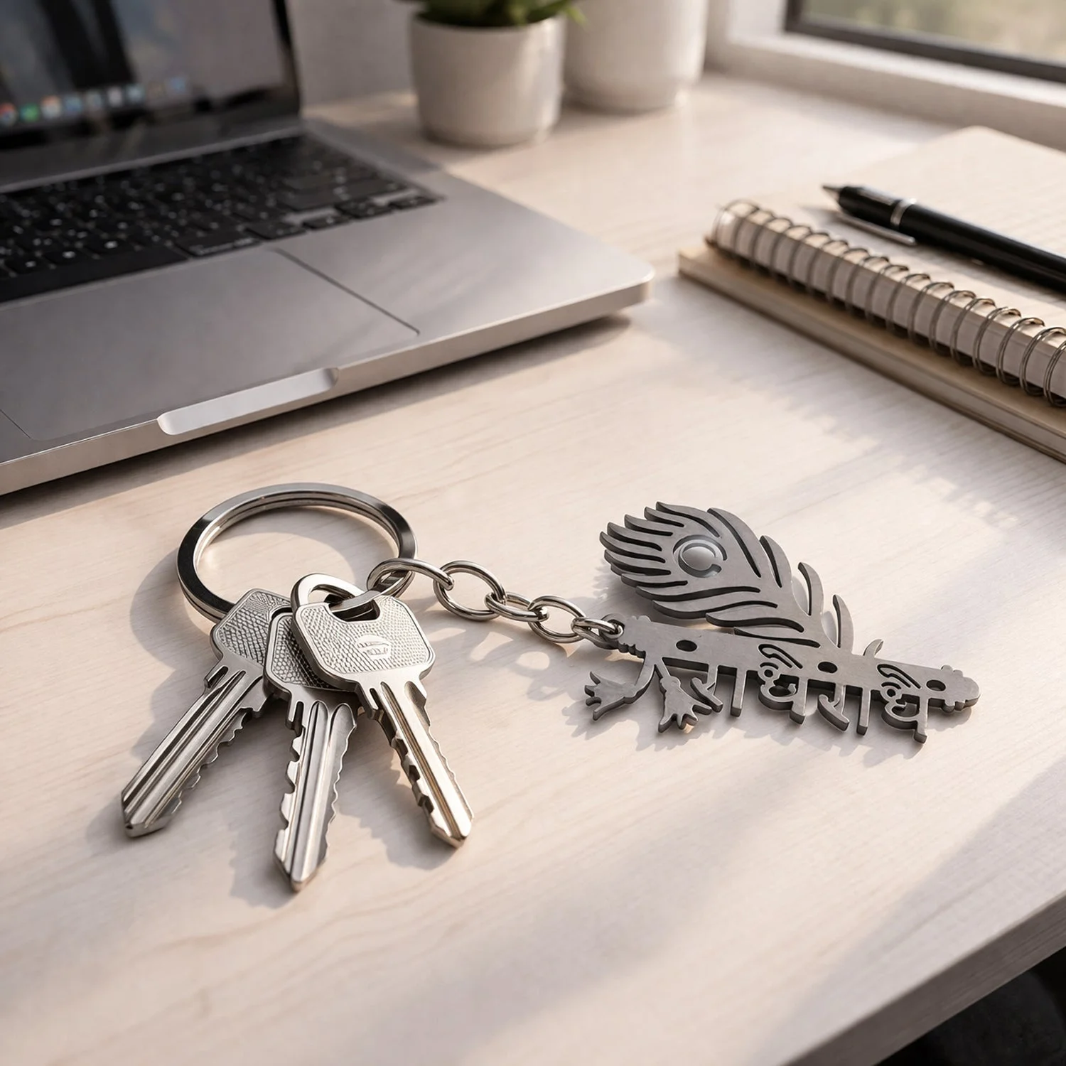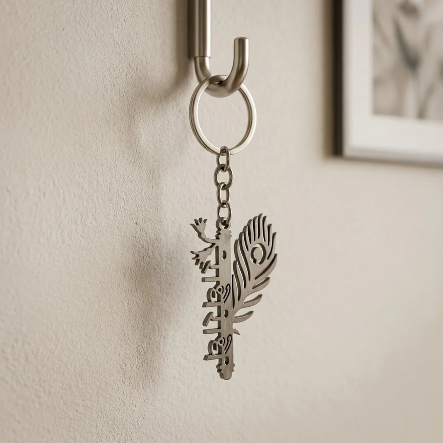 premium metal keychain, radhe radhe keychain, engraved keychain, peacock feather keychain, stylish key ring, durable metal keychain, spiritual keychain, religious keychain, hindu keychain, krishna radhe keychain, decorative keychain, car keychain, bike keychain, home key holder keychain, keychain for men, keychain for women, designer keychain, engraved metal key ring, premium quality keychain, gift keychain