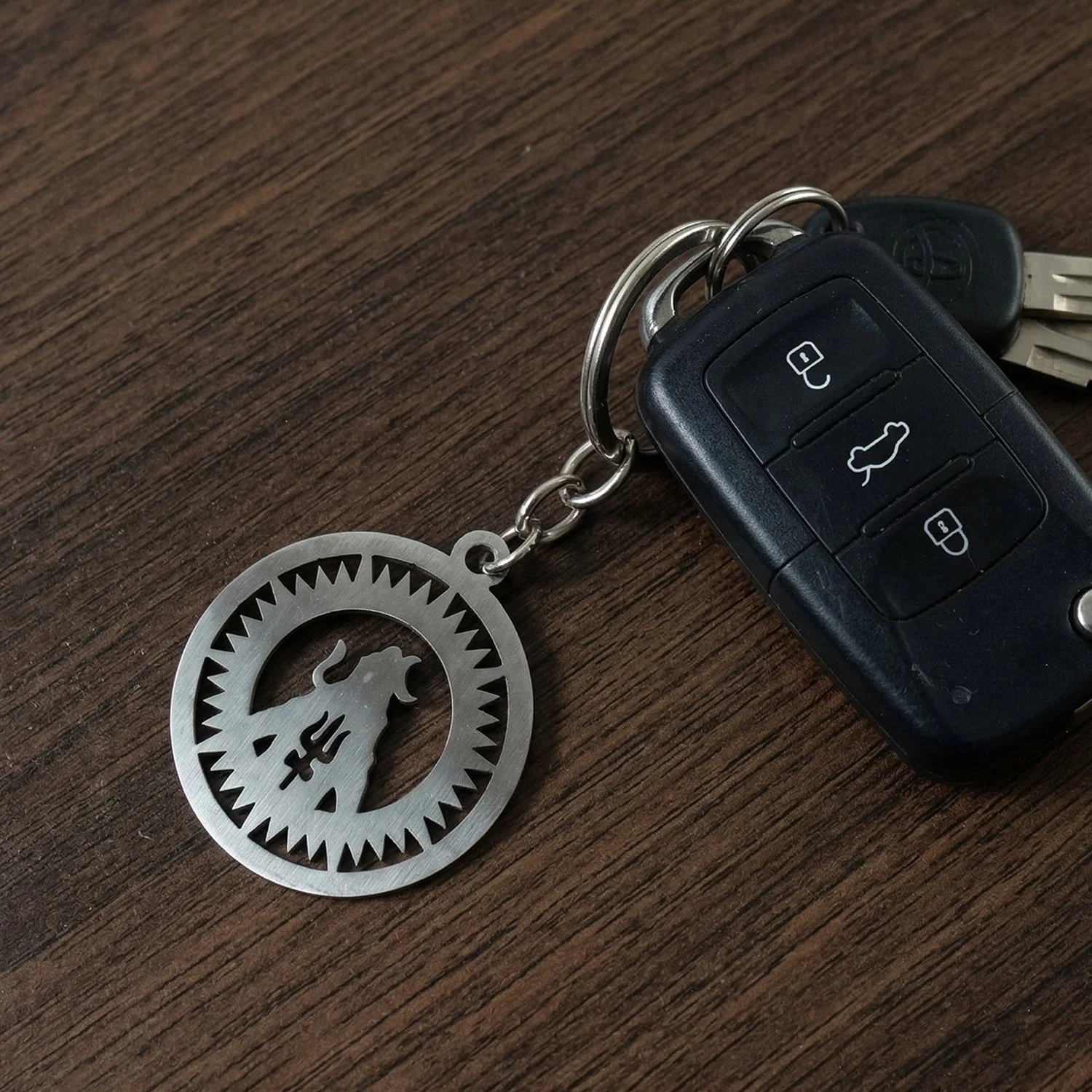 premium metal keychain, round mahakal keychain, lord mahakal engraved keyring, trishul design keychain, durable key ring, car keychain, bike keychain, home keys keychain, spiritual keychain, daily use keychain, devotional keychain, metal key pendant, stylish keychain accessory, portable key holder, religious keychain, unisex keychain, collectible keychain, decorative keychain, sturdy metal keychain, keychain for devotees, gift keychain, traditional keychain, multifunctional keychain