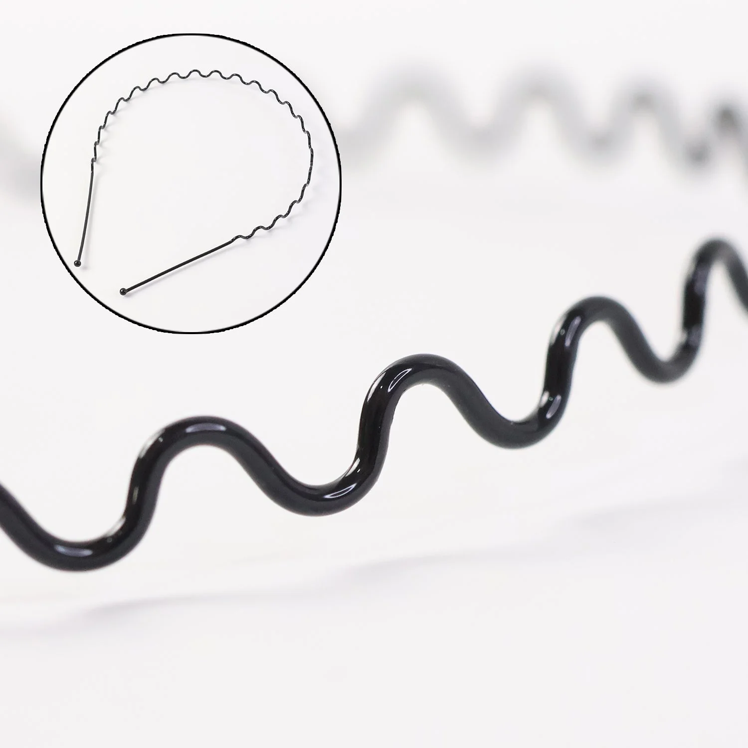 Premium Metal Wave Hair Bands for Men & Women – Flexible Black Wavy Headbands with Anti-Slip Grip, Durable Elastic Design & Rounded Tips – Unisex Hair Accessories for Sports, Gym, Styling & Daily Wear (12 Pc)