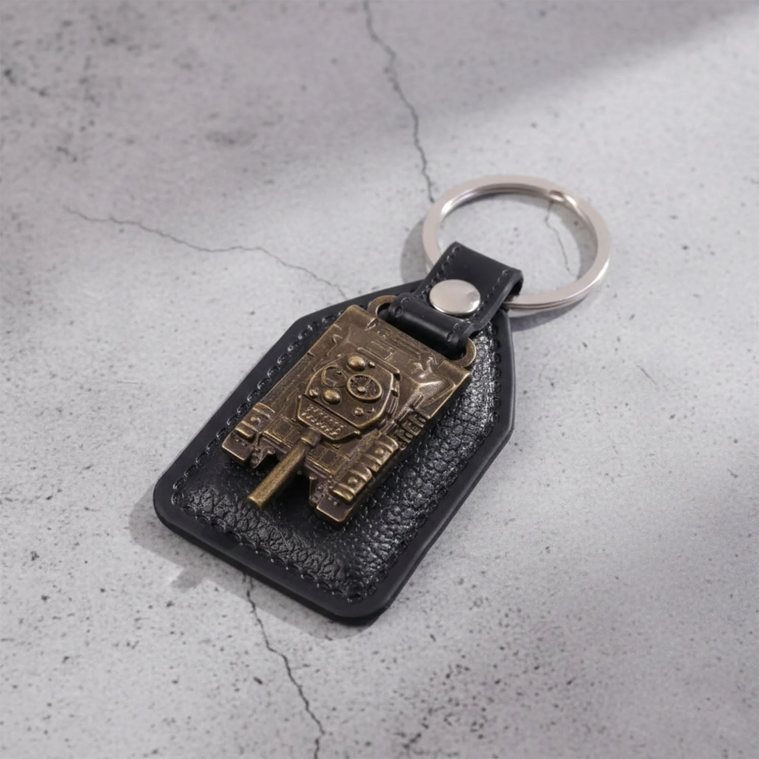 premium military tank keychain, tank design leather keychain, antique metal emblem keychain, heavy duty key ring, vintage style key holder, military vehicle keychain, leather finish key ring, decorative tank keychain, car keychain accessory, bike key holder keychain, stylish men’s keychain, retro military key ring, durable leather keychain, aviation and army gift keychain, novelty tank key holder, gift for him keychain