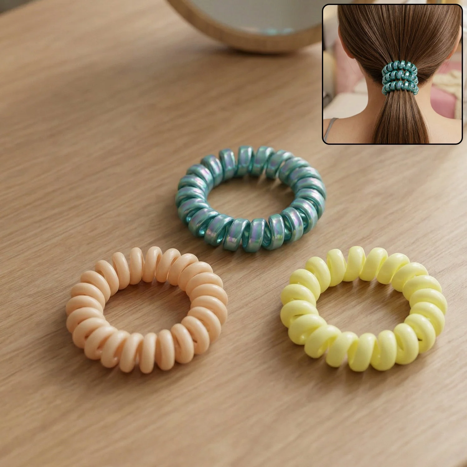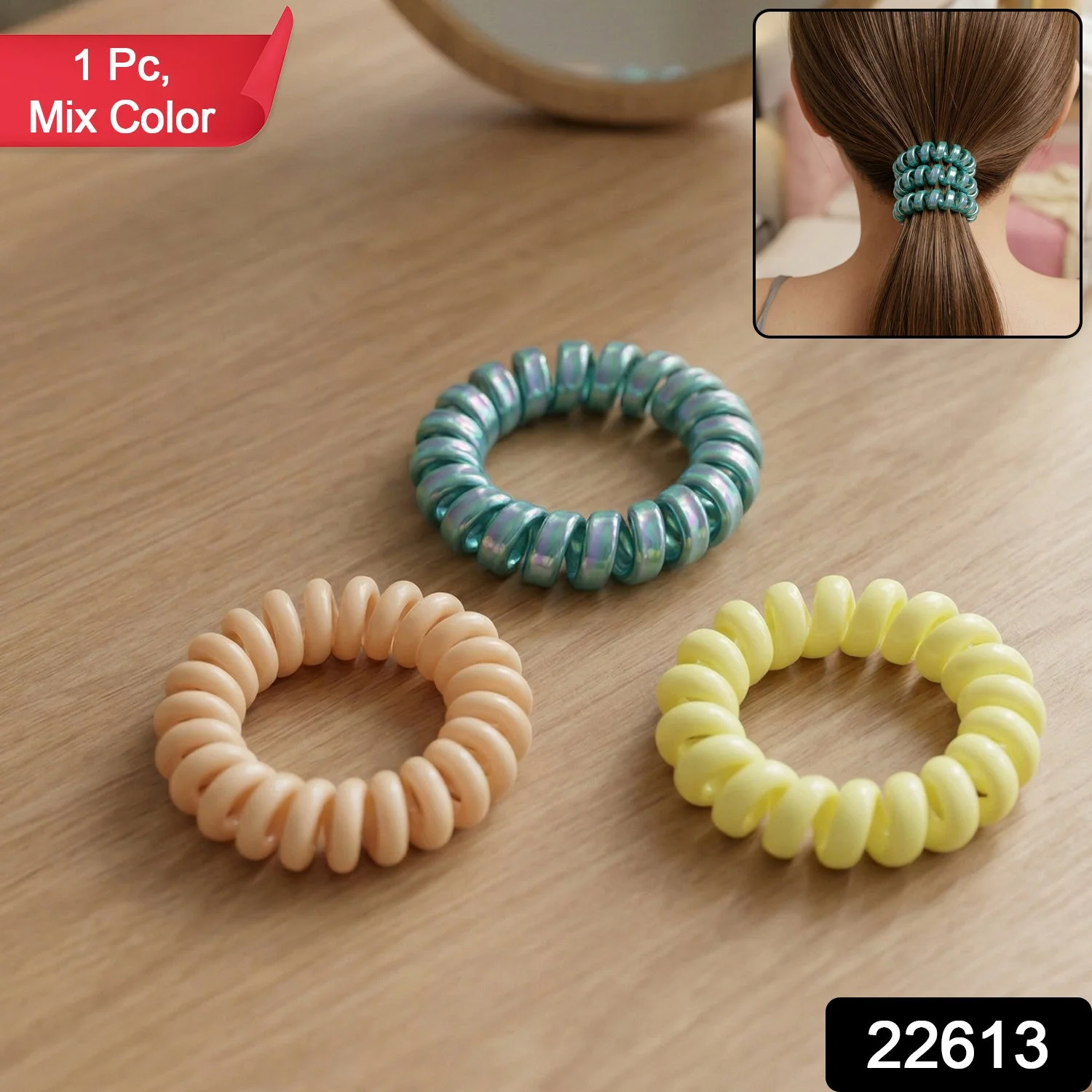 Premium Mix Color Telephone Wire Hair Band 1 Pc – Spiral Coil Elastic Hair Tie No Crease Strong Hold Ponytail Holder Stretchable Hair Accessory for Daily Use