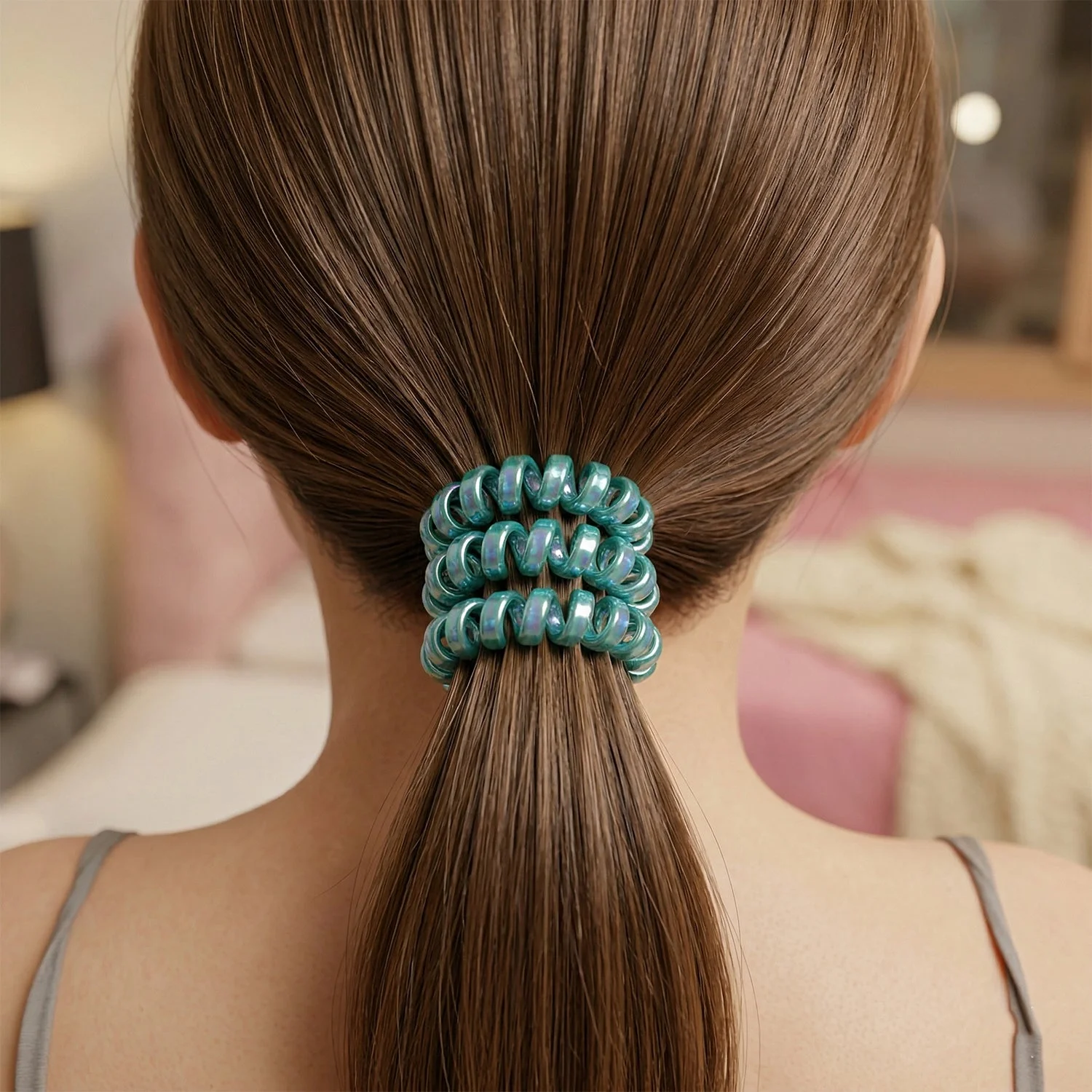 Upgrade your everyday hair styling with this stylish and practical telephone wire hair band. Designed in a spiral coil shape, this hair tie provides a strong grip without pulling or damaging your hair. Its flexible and stretchable design ensures a comfortable fit while preventing creases, making it perfect for both casual and active use. Whether you're at home, work, or on the go, this hair band offers a secure hold with a modern and trendy look.