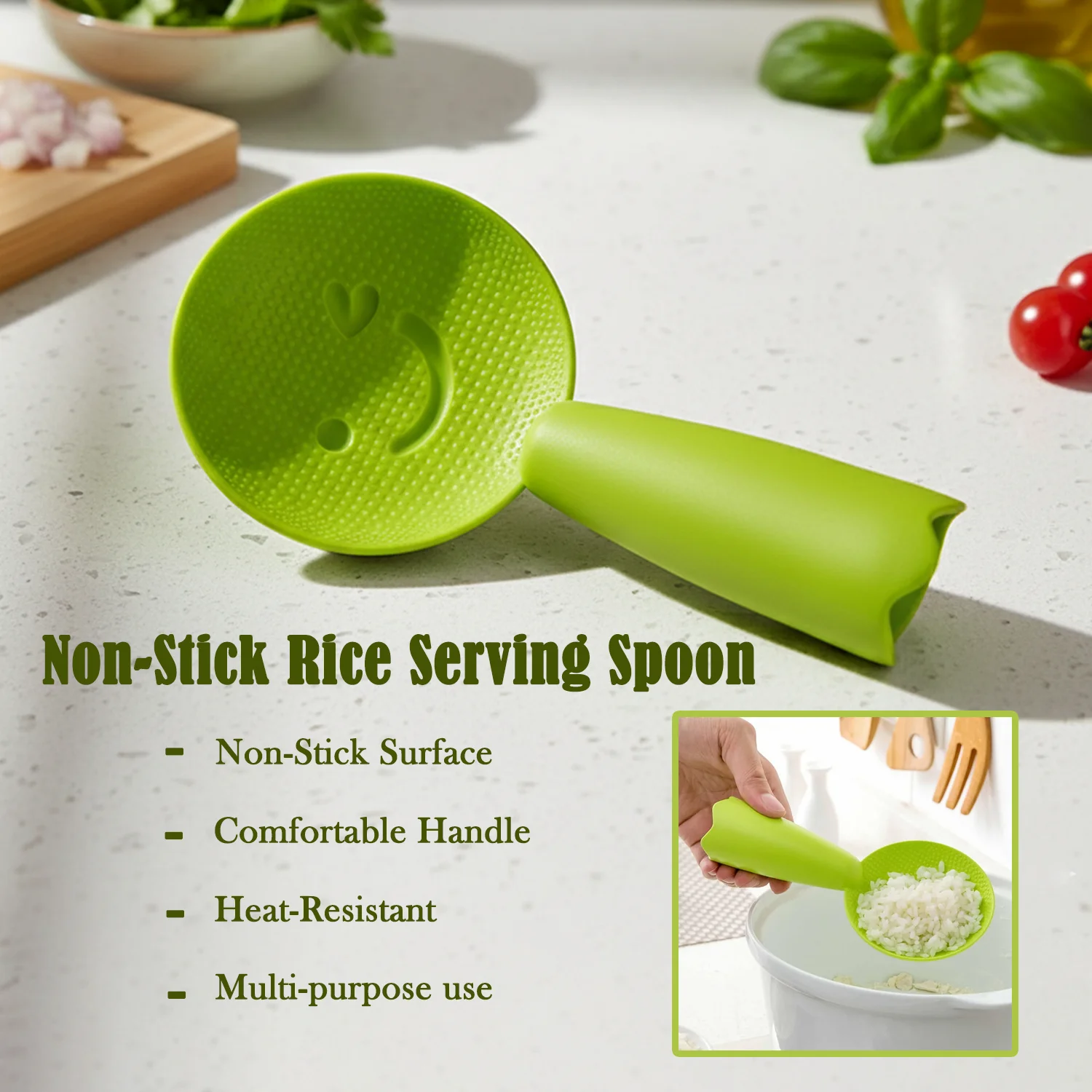 non stick rice spoon, rice serving spoon, rice paddle, rice scooper, premium rice spoon, textured rice spoon, anti slip rice spoon, non stick kitchen spoon, heat resistant rice spoon, heat resistant kitchen utensil, comfortable grip rice spoon, ergonomic rice paddle, plastic rice spoon, silicone rice spoon