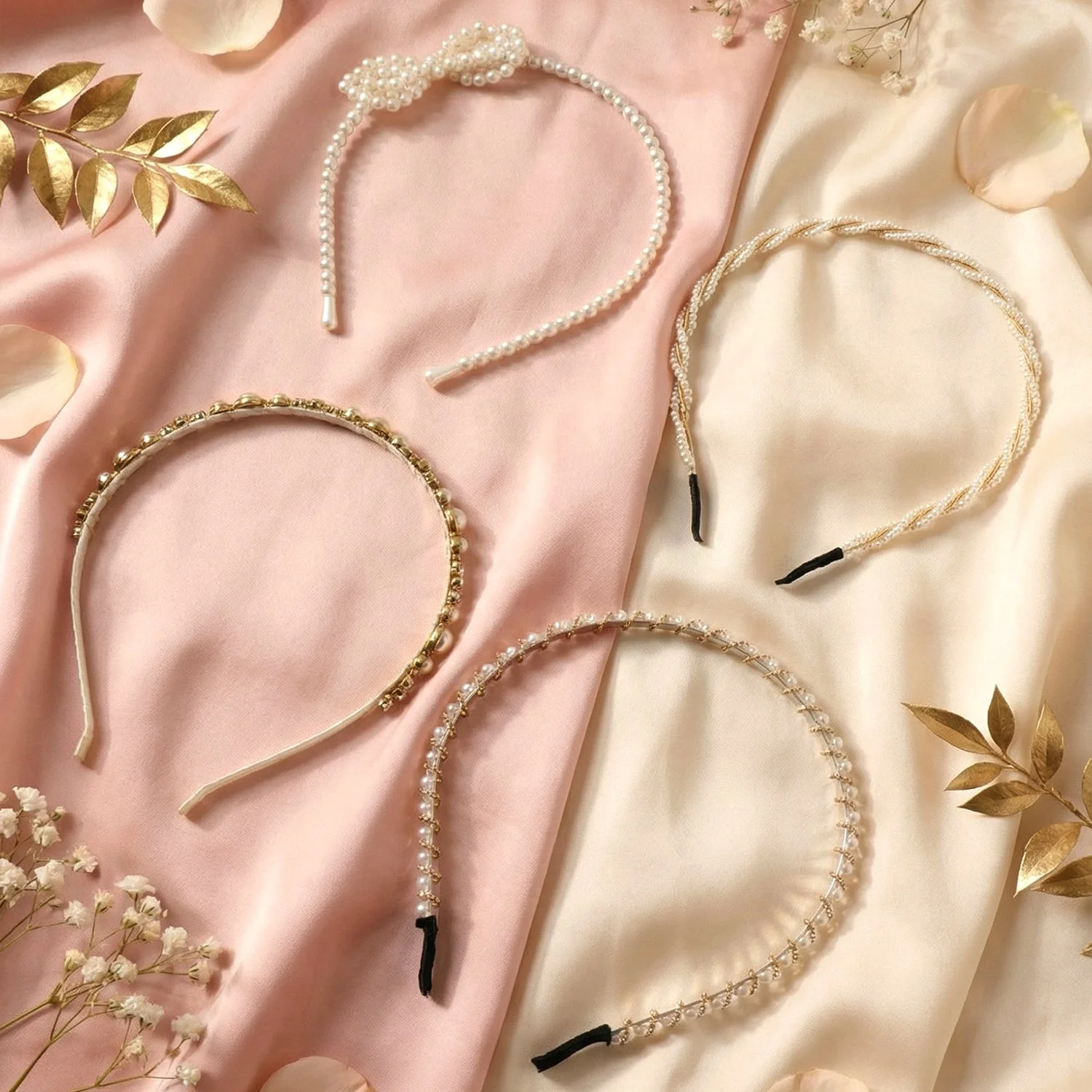 Premium Pearl & Beaded Designer Hair Band for Women and Girls – Elegant Party Wear Headband for Daily Styling, Wedding, Festive, Office & Casual Looks (1 Pc, Mix Design)