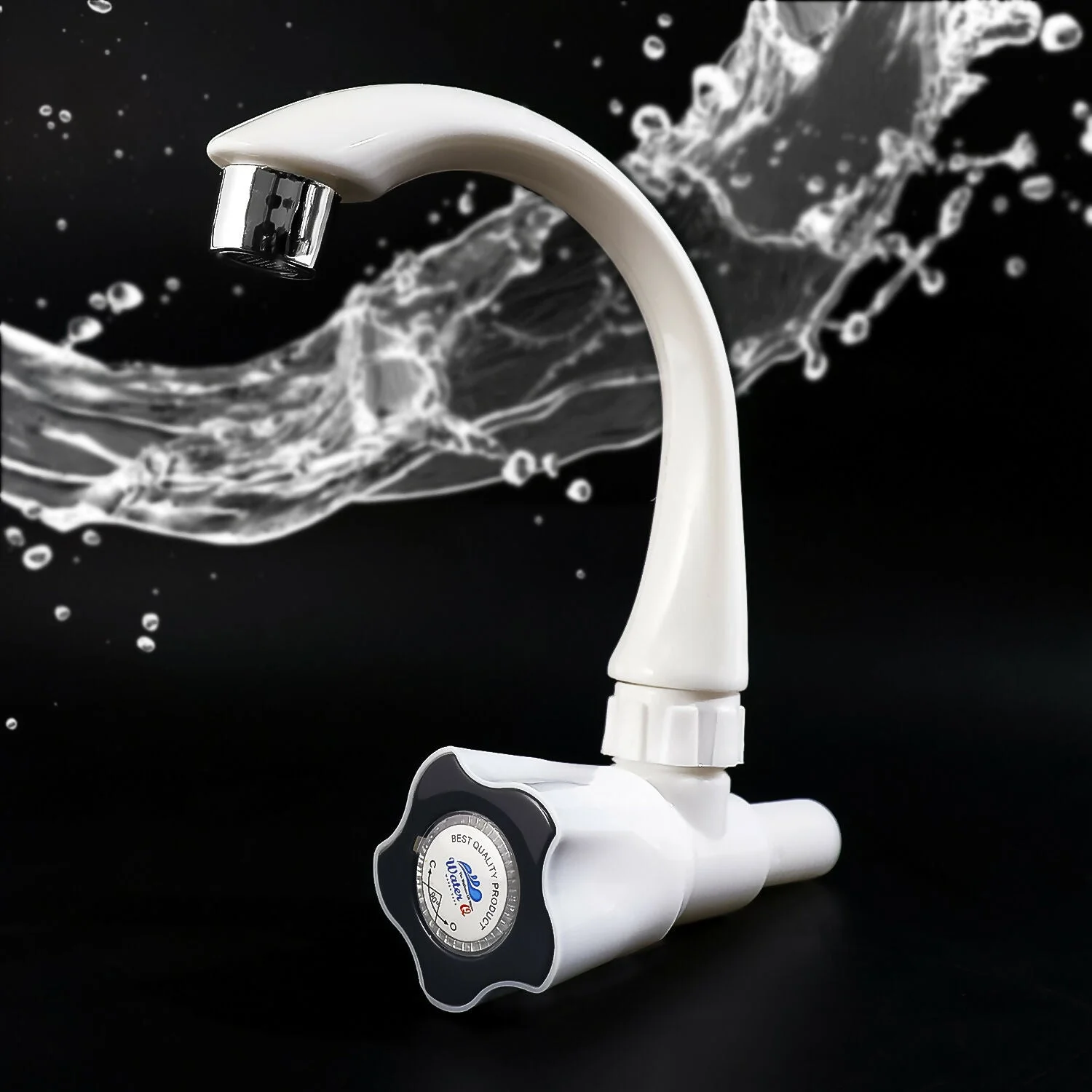 Premium Plastic Long Body Sink Tap with Curved Neck and Easy-Turn Handle – Wall Mounted Water Faucet for Kitchen, Bathroom, and Utility Use – Durable ABS Body, Anti-Leak & Rust-Free Tap with Chrome Spout (1 Pc)