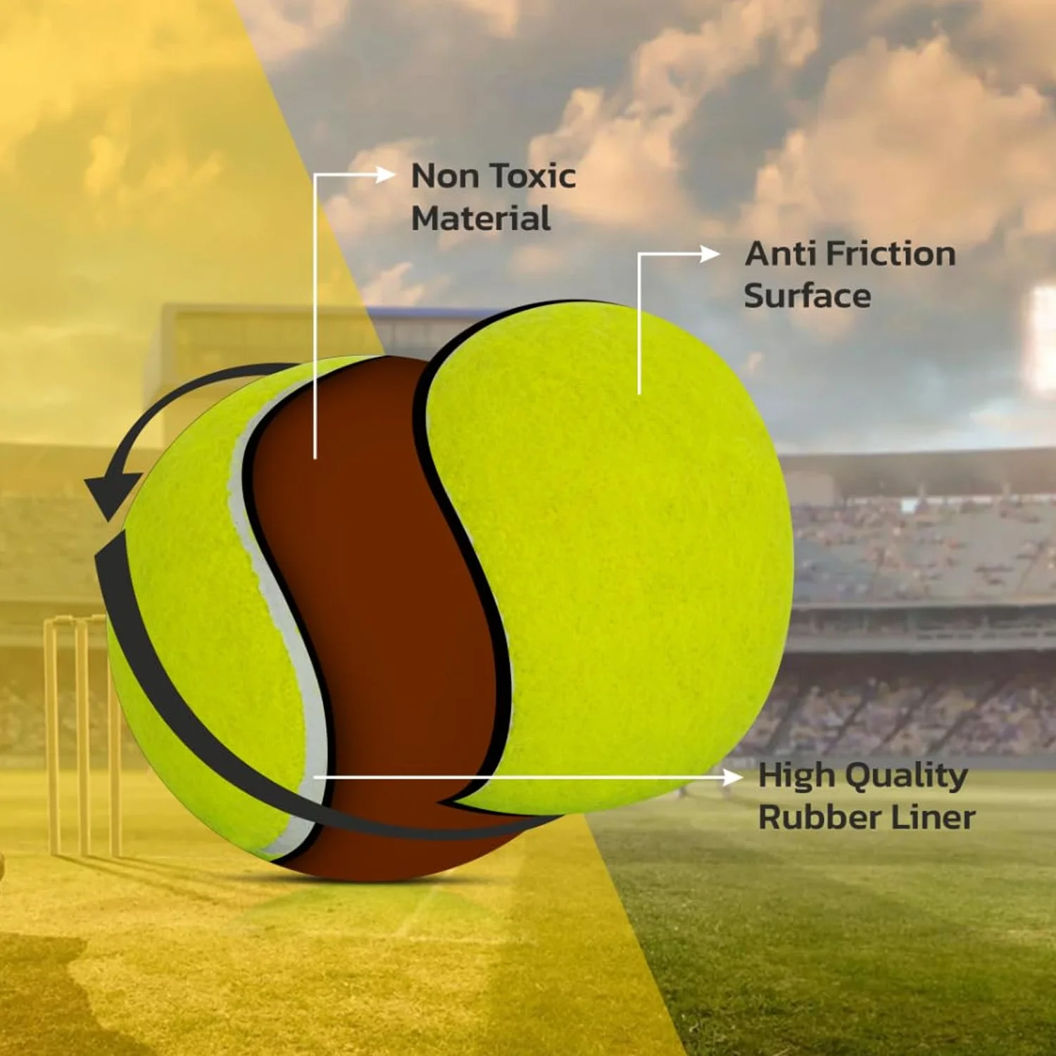3 Pc Tennis Ball Set – Durable High-Quality Yellow Tennis Balls for Cricket, Sports Training, and Practice – Ideal for Kids and Adults