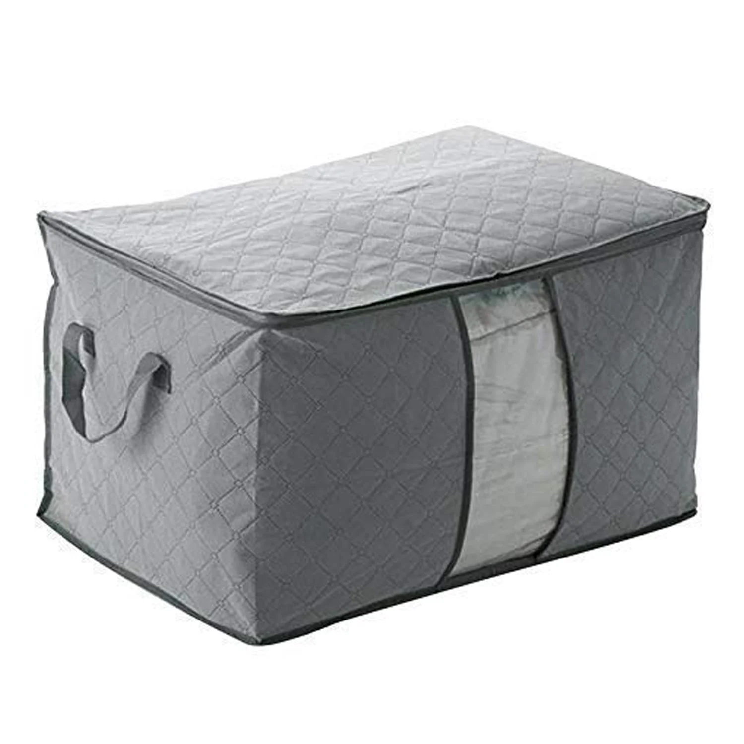 Organize your living space effortlessly with this premium quilted storage bag, thoughtfully designed for maximum utility and style. Crafted from high-quality non-woven fabric with elegant diamond-pattern quilting, this storage bag is perfect for safely storing clothes, blankets, bedding, quilts, and more. The clear front window allows you to easily view contents without having to open the bag. Strong dual handles on the sides provide ease of lifting and moving, while the full zippered closure ensures dust-free, protected storage. Its lightweight yet sturdy construction, combined with a foldable design, makes it easy to store when not in use. A must-have organizer for closets, under-bed spaces, or travel needs.