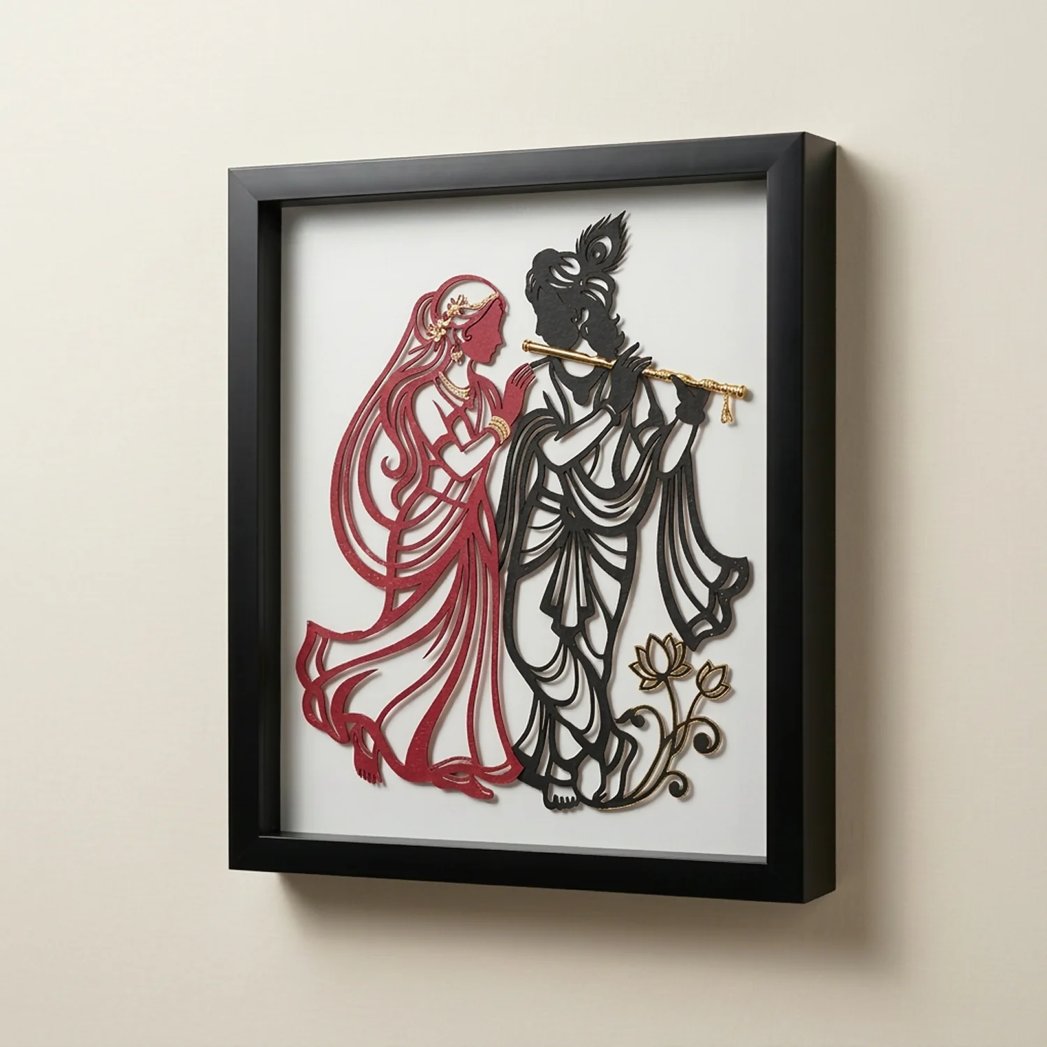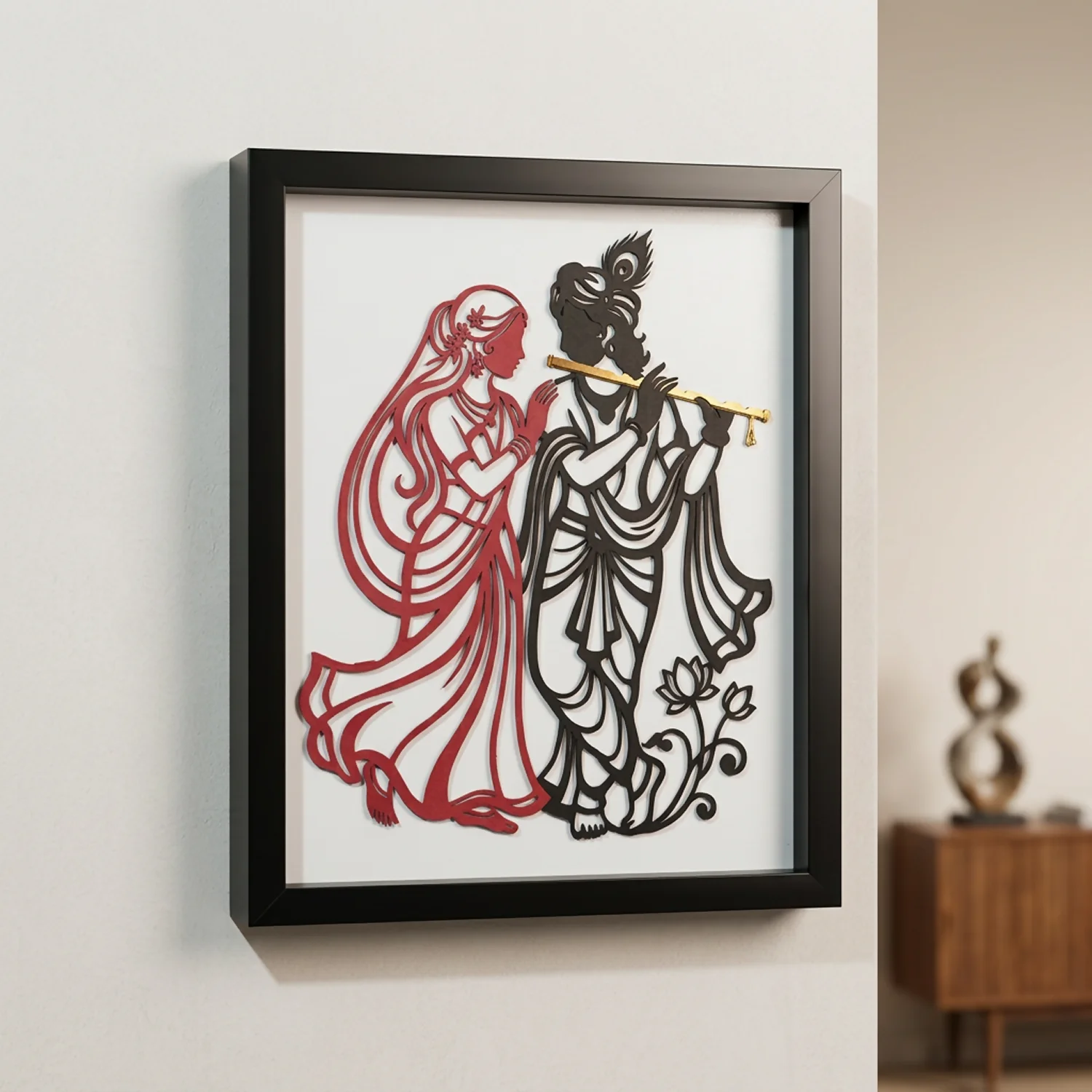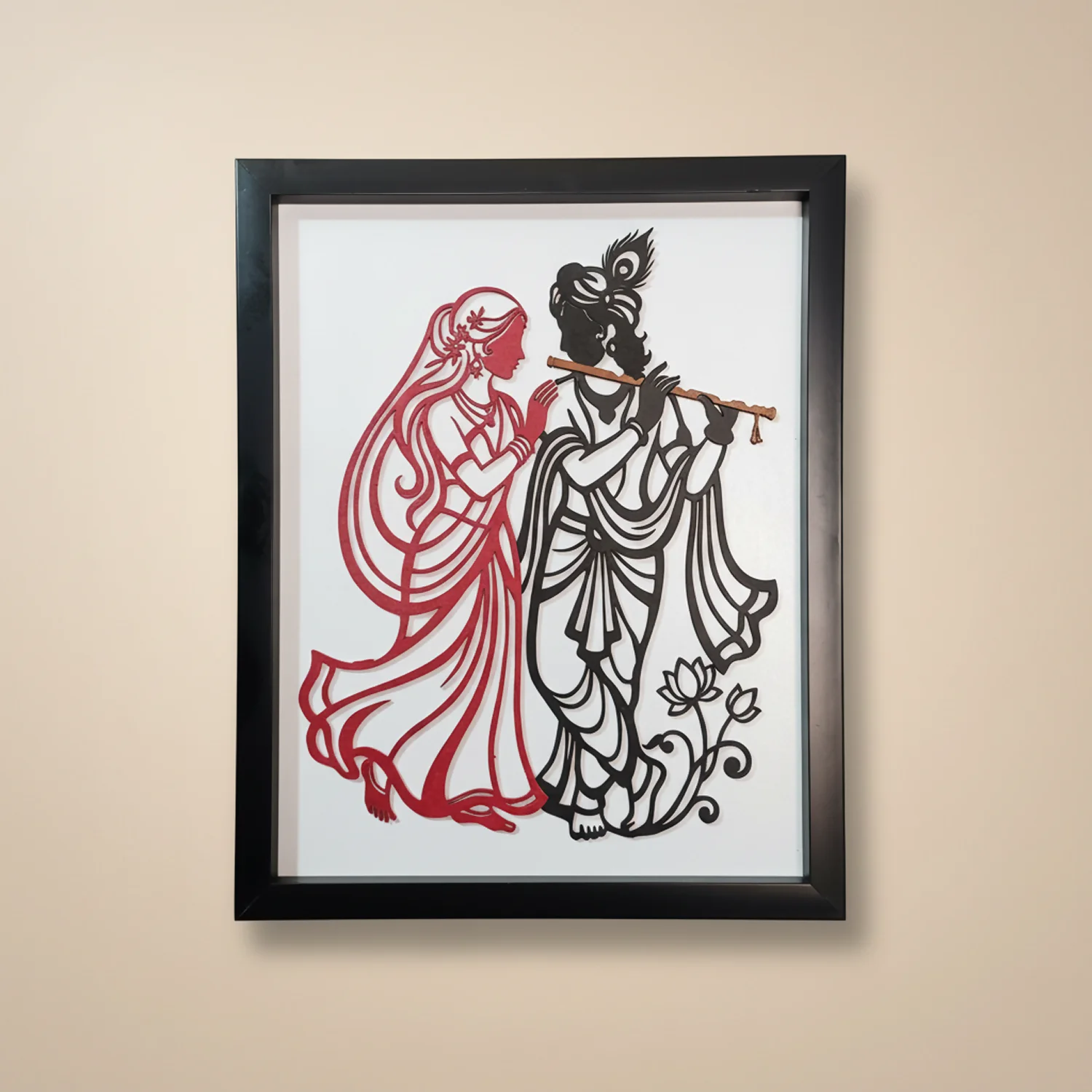 Bring divine grace and timeless love into your home with this Premium Radha Krishna Wall Art Frame. Beautifully crafted with precision laser-cut detailing, this elegant artwork captures the sacred bond of Radha and Krishna, symbolizing love, devotion, harmony, and positivity.