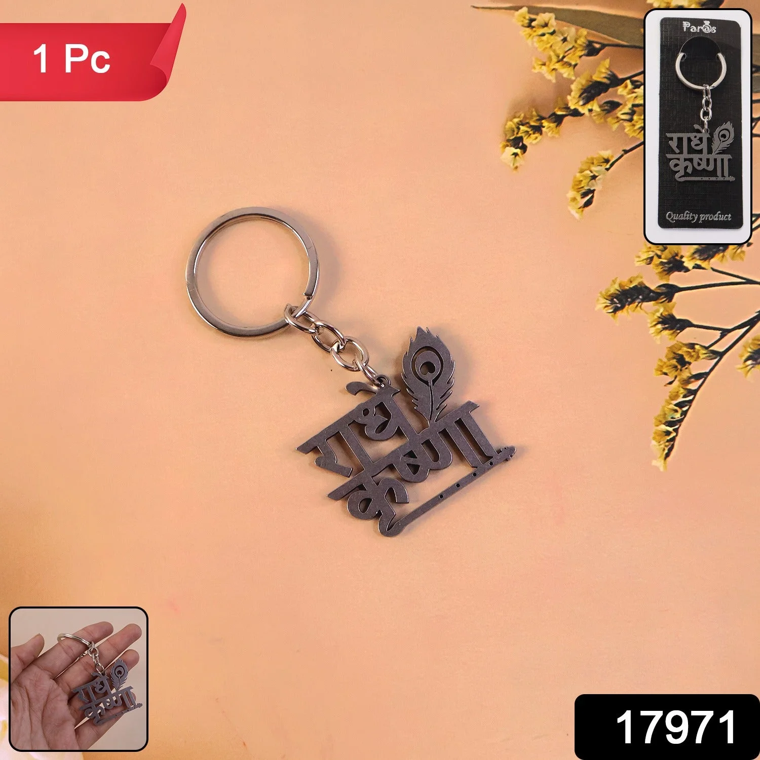 Celebrate devotion and style together with this Premium Radhe Krishna Metal Keychain, beautifully crafted with a divine “राधे कृष्णा” text charm and an elegant peacock feather symbol. Designed for devotees and spiritual enthusiasts, this keychain is both a meaningful accessory and a practical item for daily use.