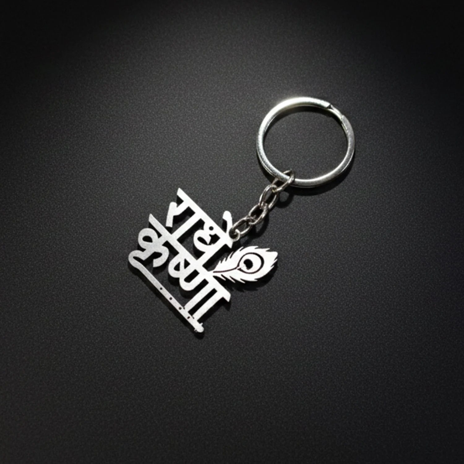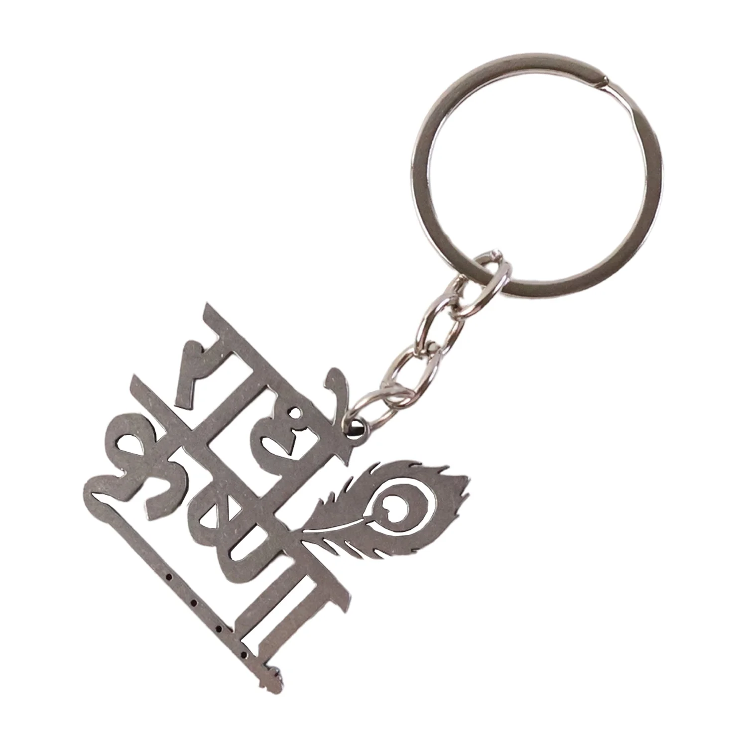 Premium “Radhe Krishna” Metal Keychain with Peacock Feather Design | Stylish Spiritual Key Ring for Bike, Car, Home & Office | Durable Stainless Steel Key Holder – 1 Pc