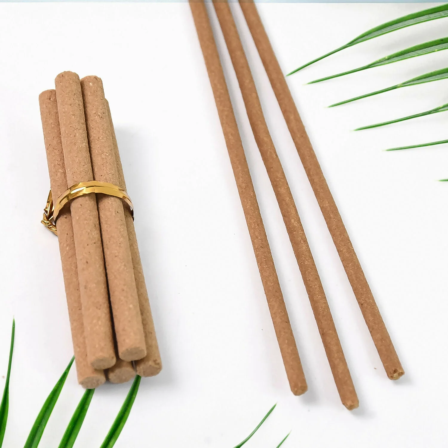 Made from natural ingredients like wood powders, aromatic herbs, resins, and essential oils, it emits a pleasant fragrance when burned.