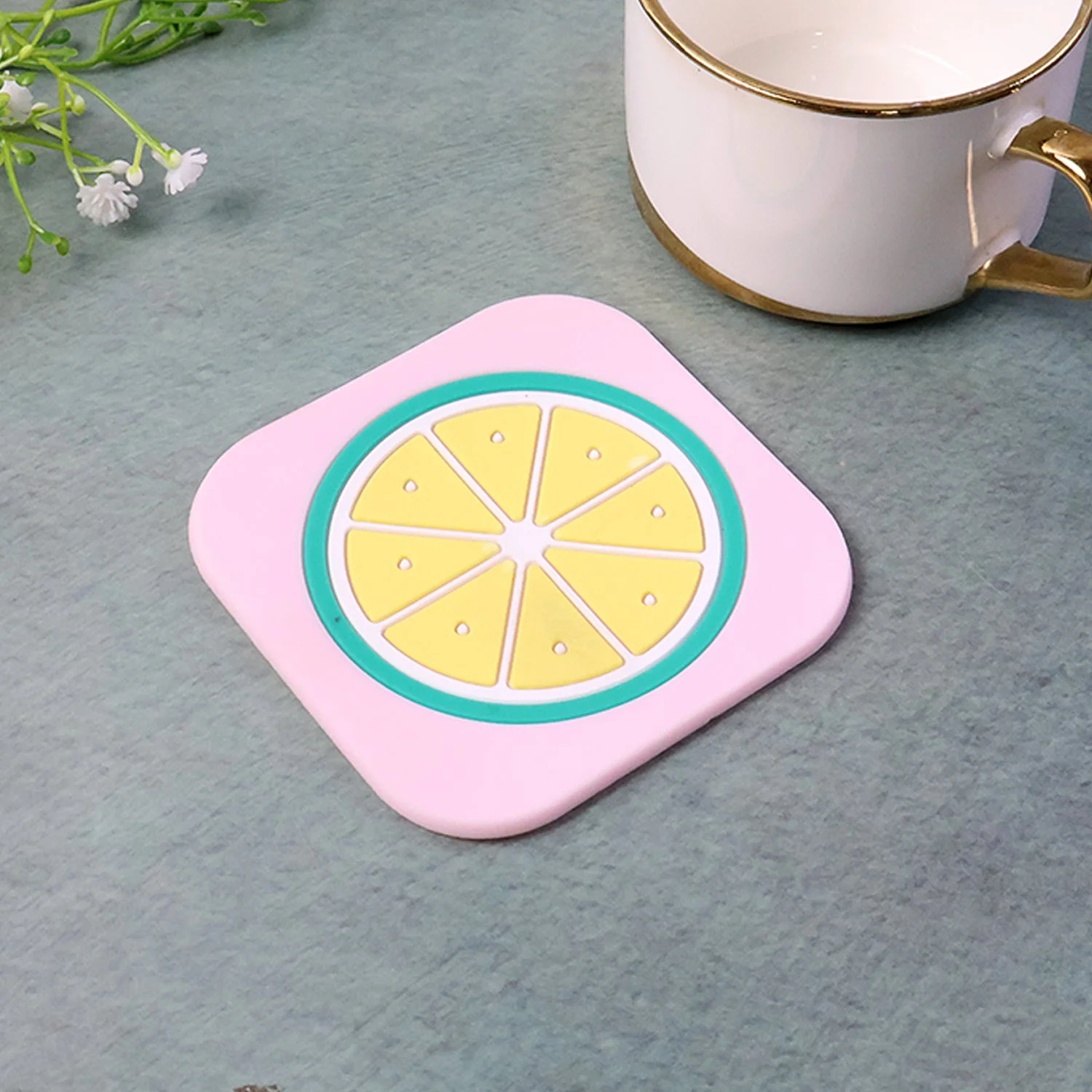 Premium Silicone Drink Coaster – Anti-Slip, Heat-Resistant Table Protector with Decorative Lemon Design for Cups, Mugs & Glasses (1 Pc, 8×8 cm / Mix Design)