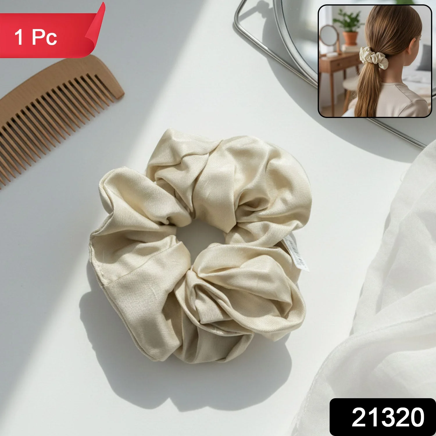 Premium Soft Fabric Hair Scrunchie for Women and Girls with Strong Stretch Elastic – Elegant Neutral Color Hair Tie for Ponytail, Bun, Daily Styling and Minimalist Look (1 P)
