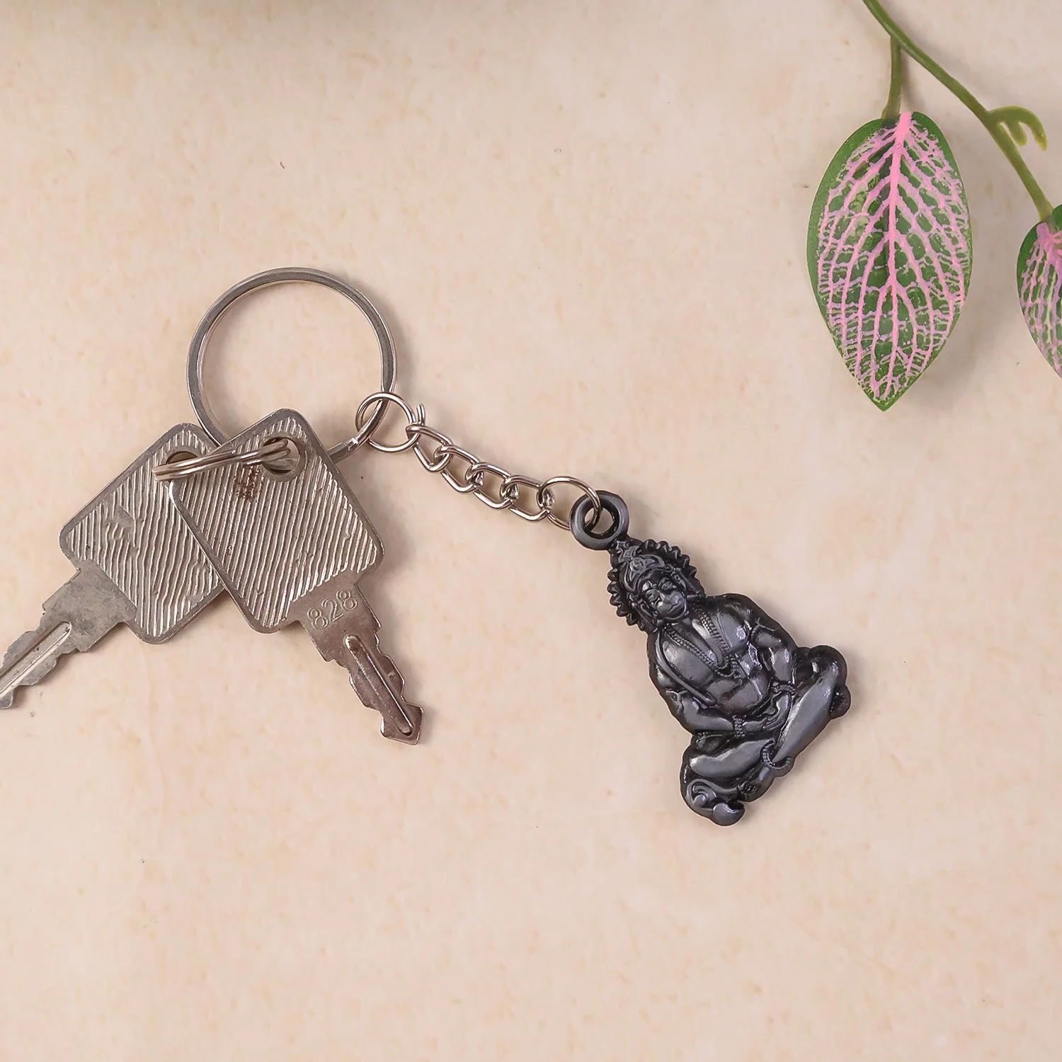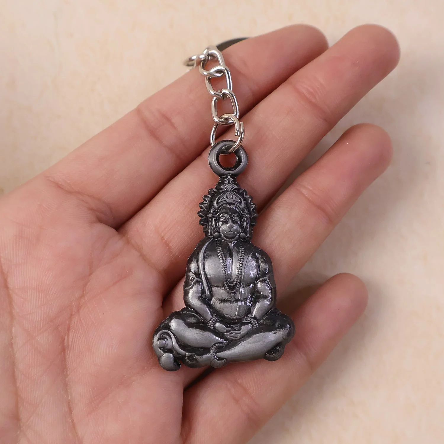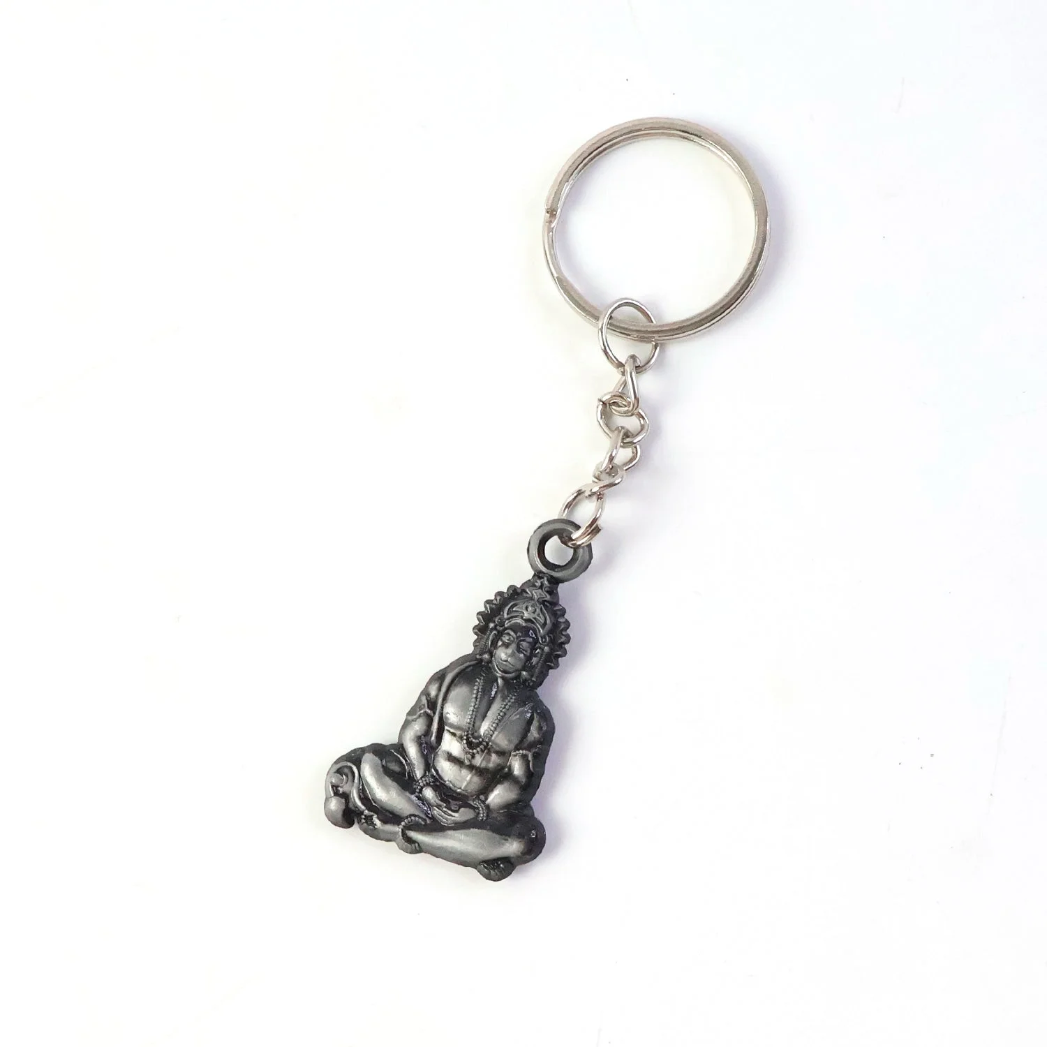 Devotional keychain featuring Hanuman Ji in a detailed sitting pose