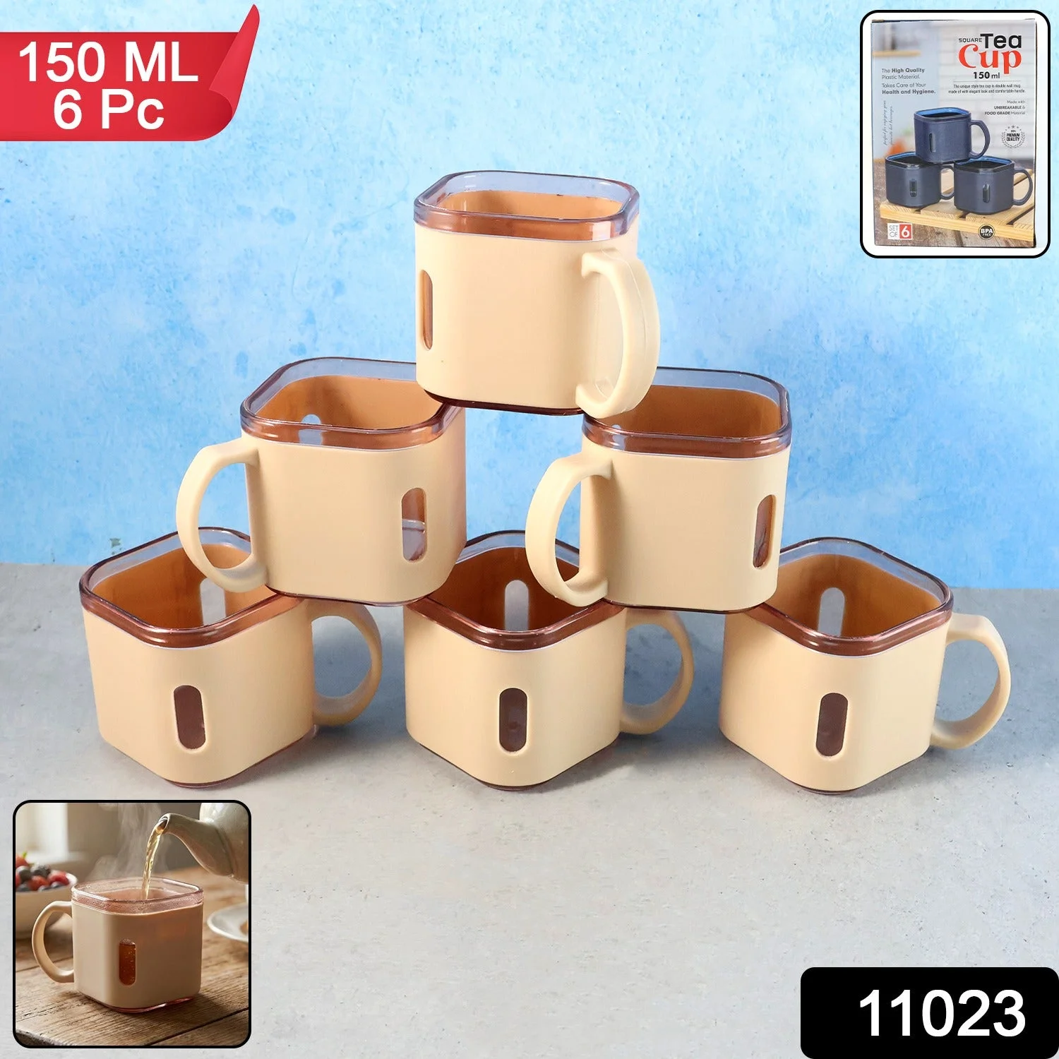Premium Square Shape Tea Cup Set – 6-Piece Lightweight Unbreakable Cups for Tea, Coffee & Daily Use (150 ml Capacity Each)