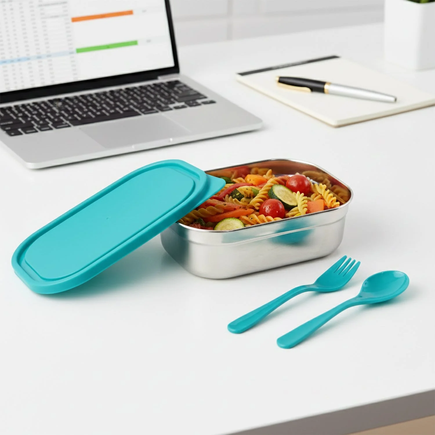 Comes with matching fork and spoon for a complete, ready-to-use lunch solution.