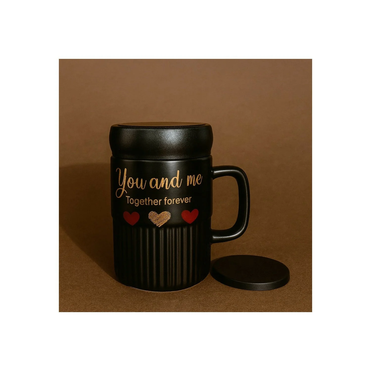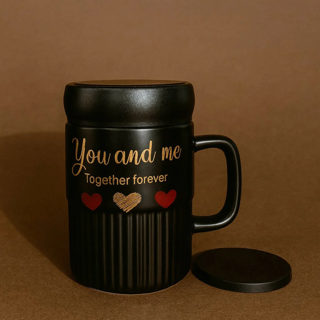 Celebrate love every day with this beautifully crafted Premium Ceramic Valentine Mug, designed specially for couples who enjoy sharing warm moments together. The mug features a stylish ribbed texture, a durable handle, a tight-fit lid to retain heat, and a romantic printed quote that makes it a perfect gift for your special one.