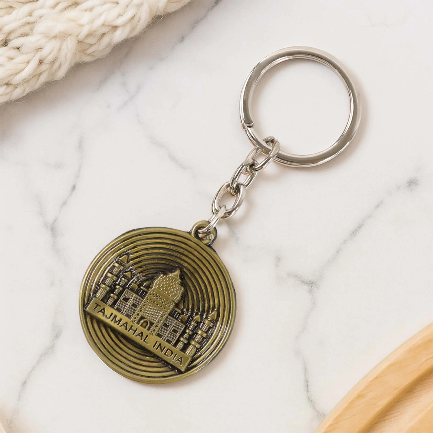 Premium Taj Mahal India Souvenir Keychain – Antique Brass Finish Metal Key Ring for Bike, Car, and Bag – Durable Collectible Gift Key Chain for Travel Lovers & Heritage Enthusiasts (1 Pc)