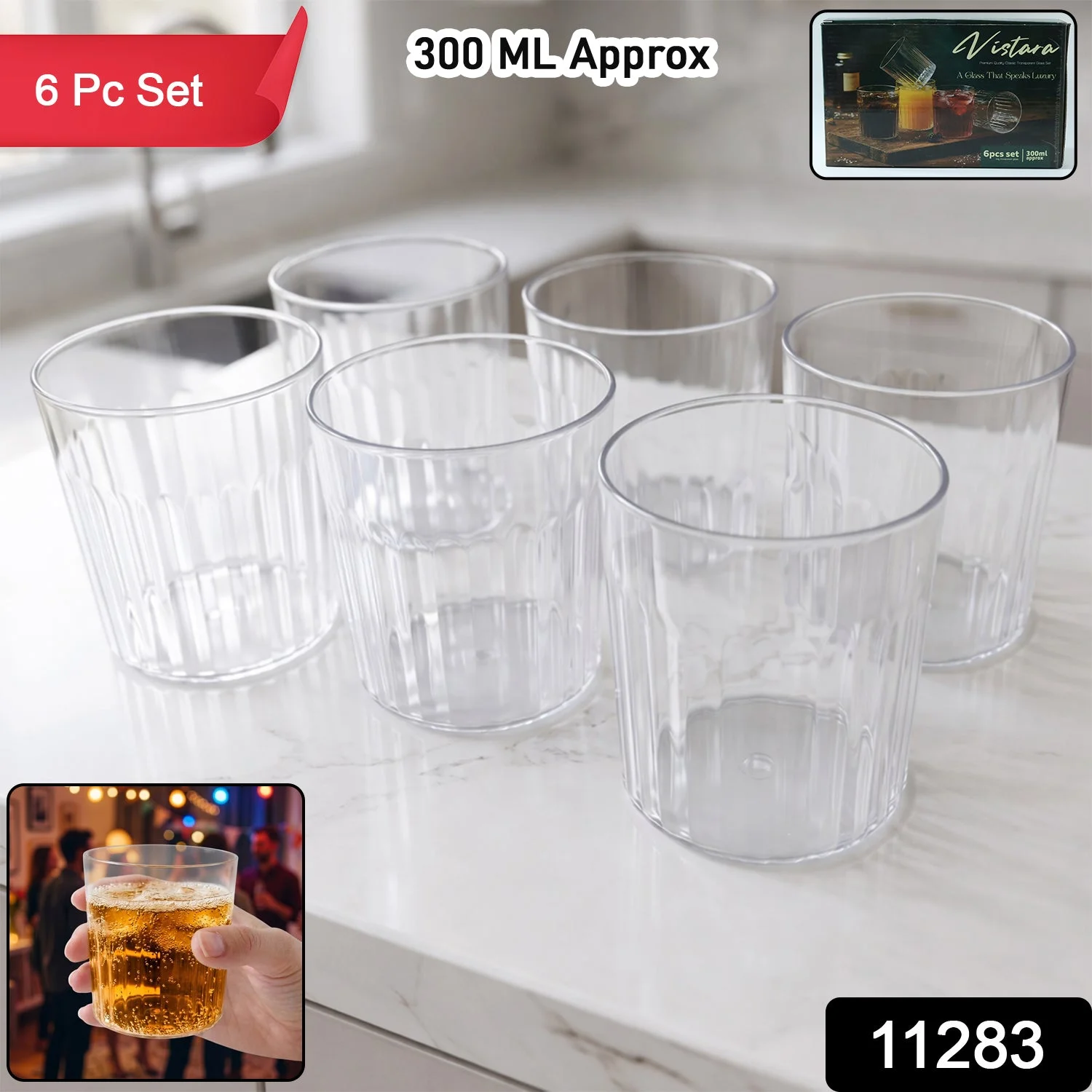 Premium Transparent Drinking Glass Set for Water Juice Soft Drinks Durable Everyday Use Stylish Ribbed Design Multipurpose Beverage Glasses 300 ML Approx 6 Pc Set