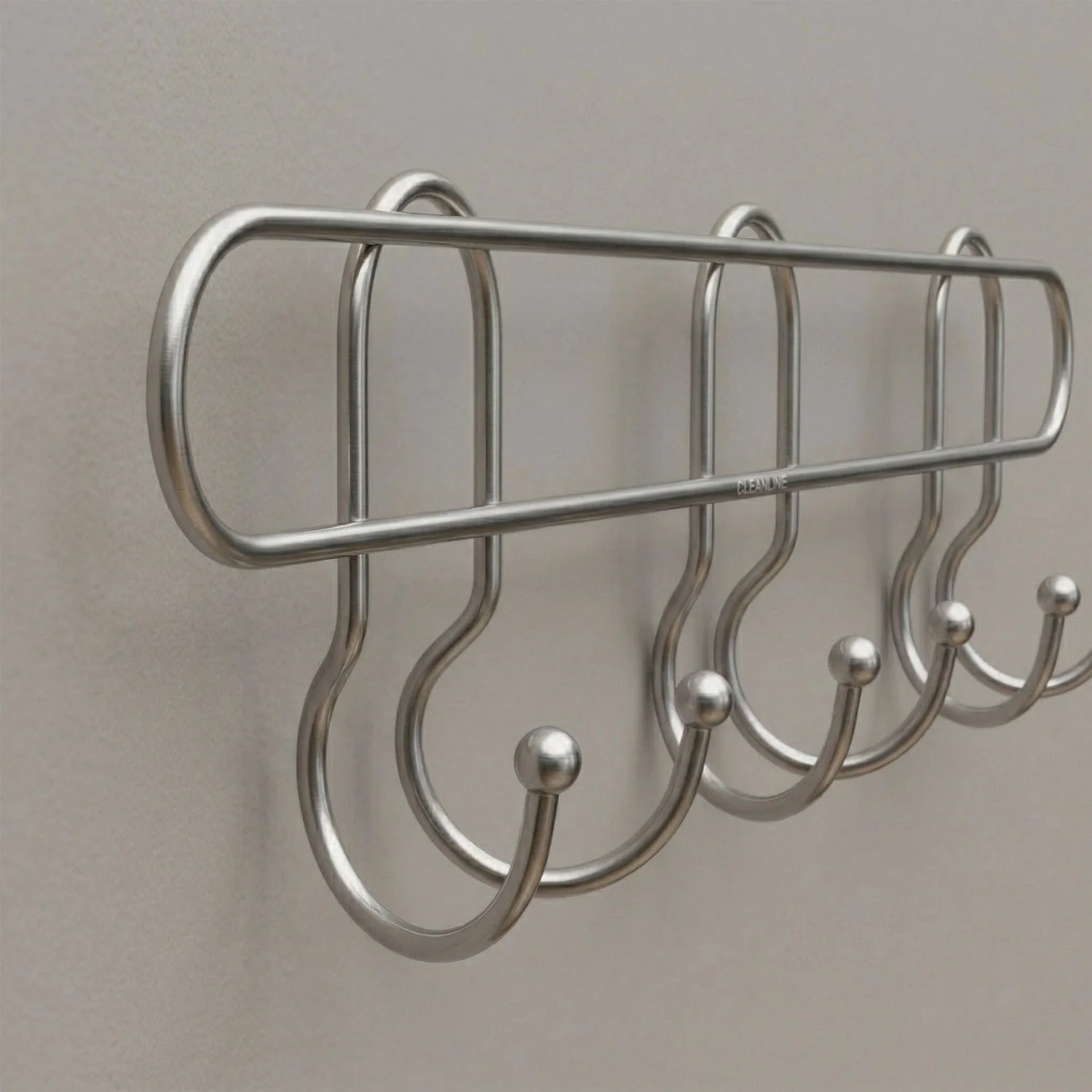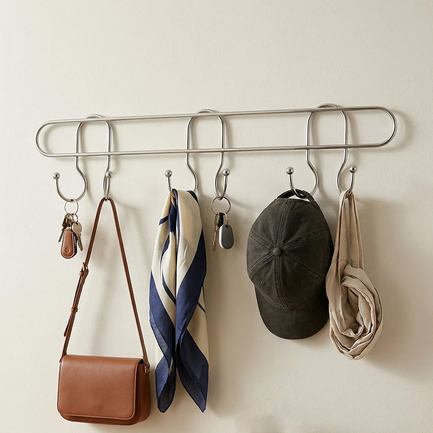 Premium Wall Mounted Metal Multi Hook Rack - Stylish and Durable Coat, Hat, and Towel Hanger - Easy Installation, Stainless Steel, 1 Pc