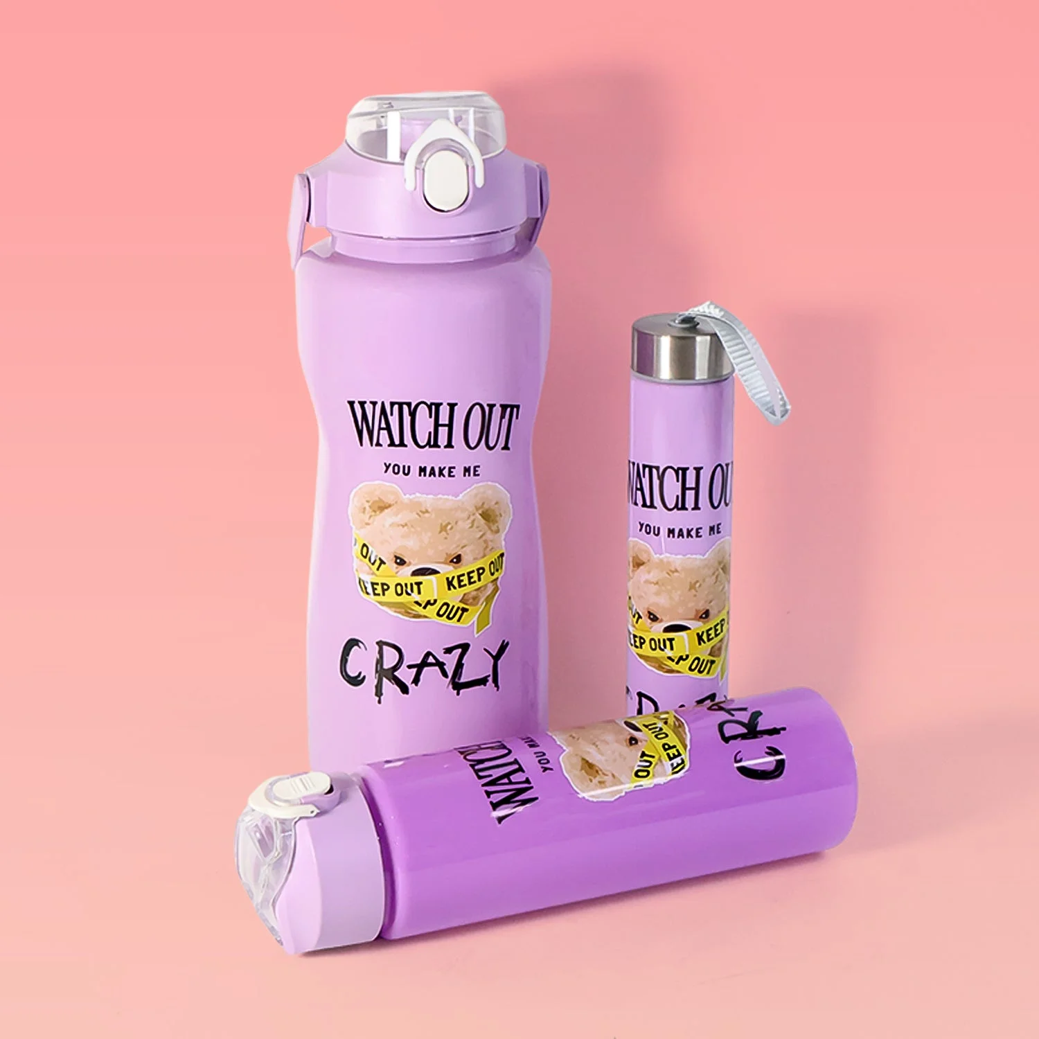 This premium set of 3 water bottles is designed for daily hydration with style and practicality. Featuring three different capacities – 2000ML, 900ML, and 300ML – this combo ensures you always have the right bottle size for every occasion. The bottles are lightweight, durable, and made from high-quality BPA-free material, ensuring safe drinking water storage. With trendy printed designs and sturdy lids, they are leak-proof and easy to carry. Packed in a brown box, this set makes a functional and thoughtful gift as well.
