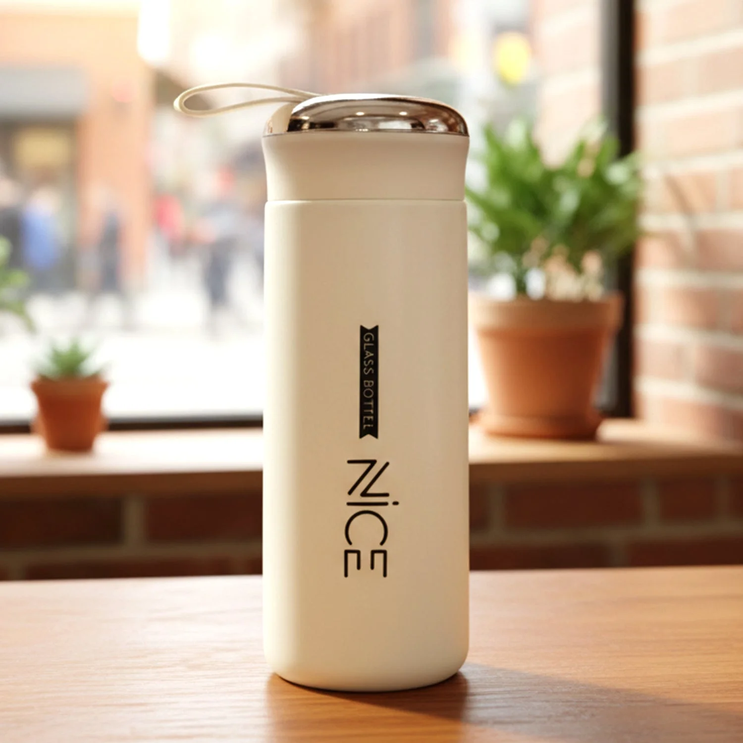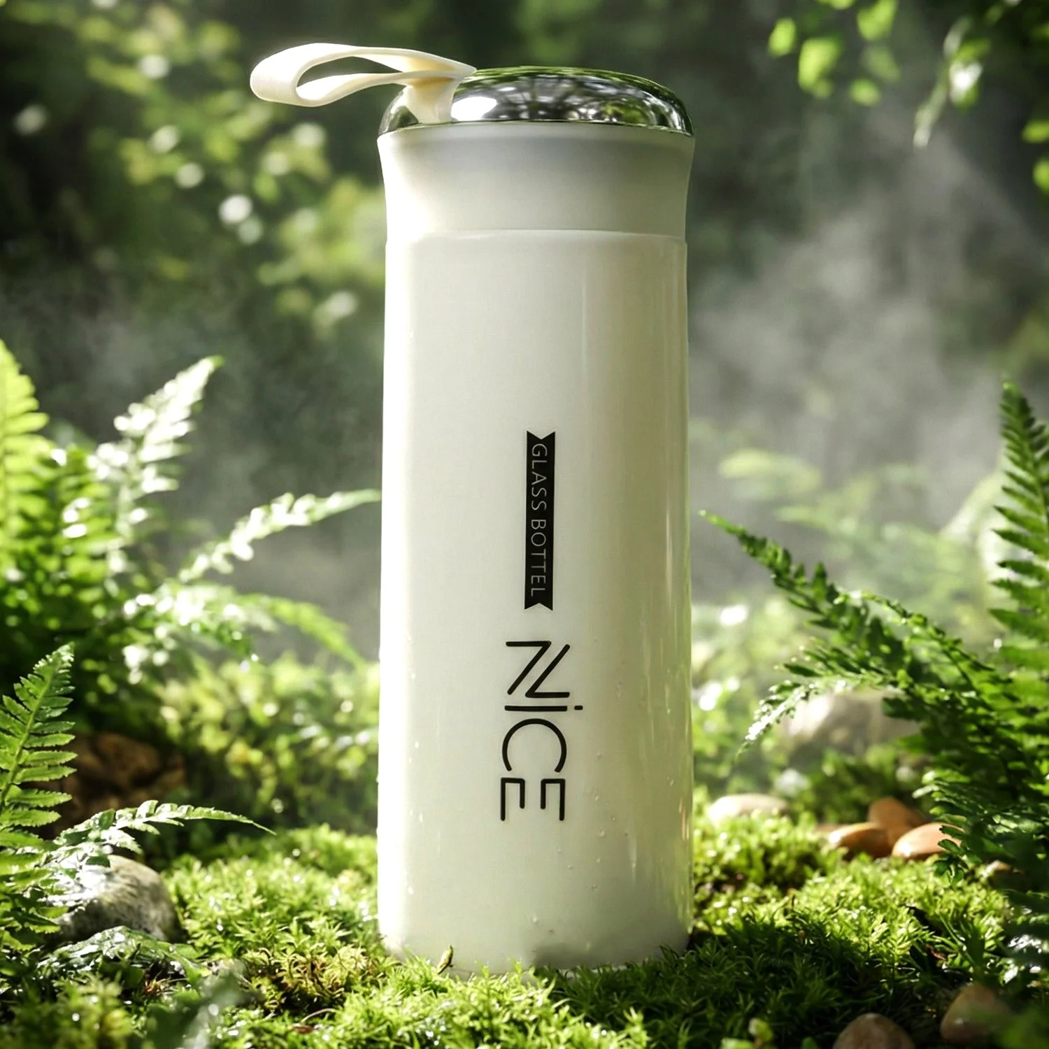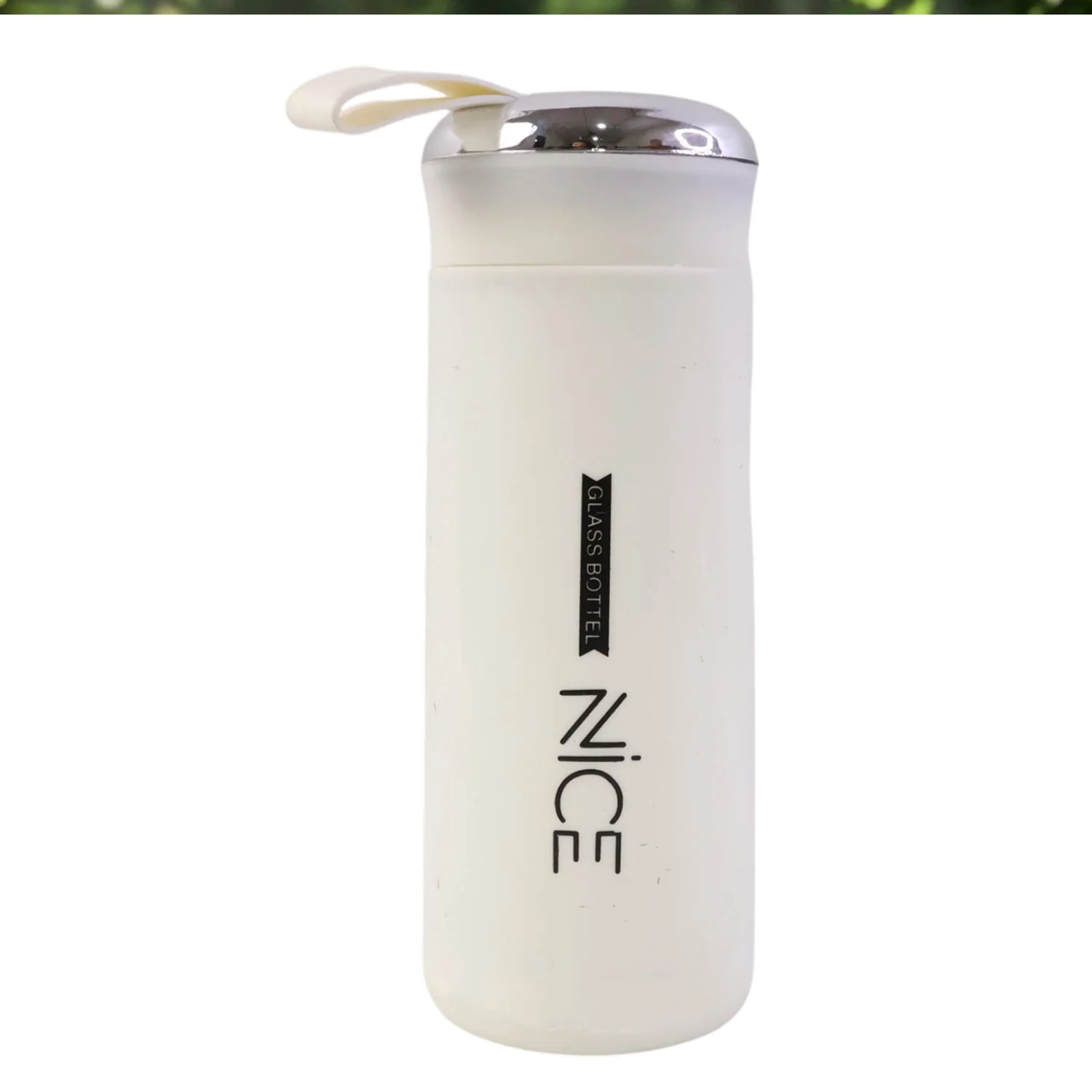 premium white glass water bottle, glass water bottle with cover, leakproof glass bottle, glass bottle with carry strap, protective sleeve glass bottle, reusable glass water bottle, gym glass water bottle, office water bottle glass, travel glass bottle with strap, school glass water bottle, daily hydration bottle glass, detox water glass bottle, juice bottle glass reusable