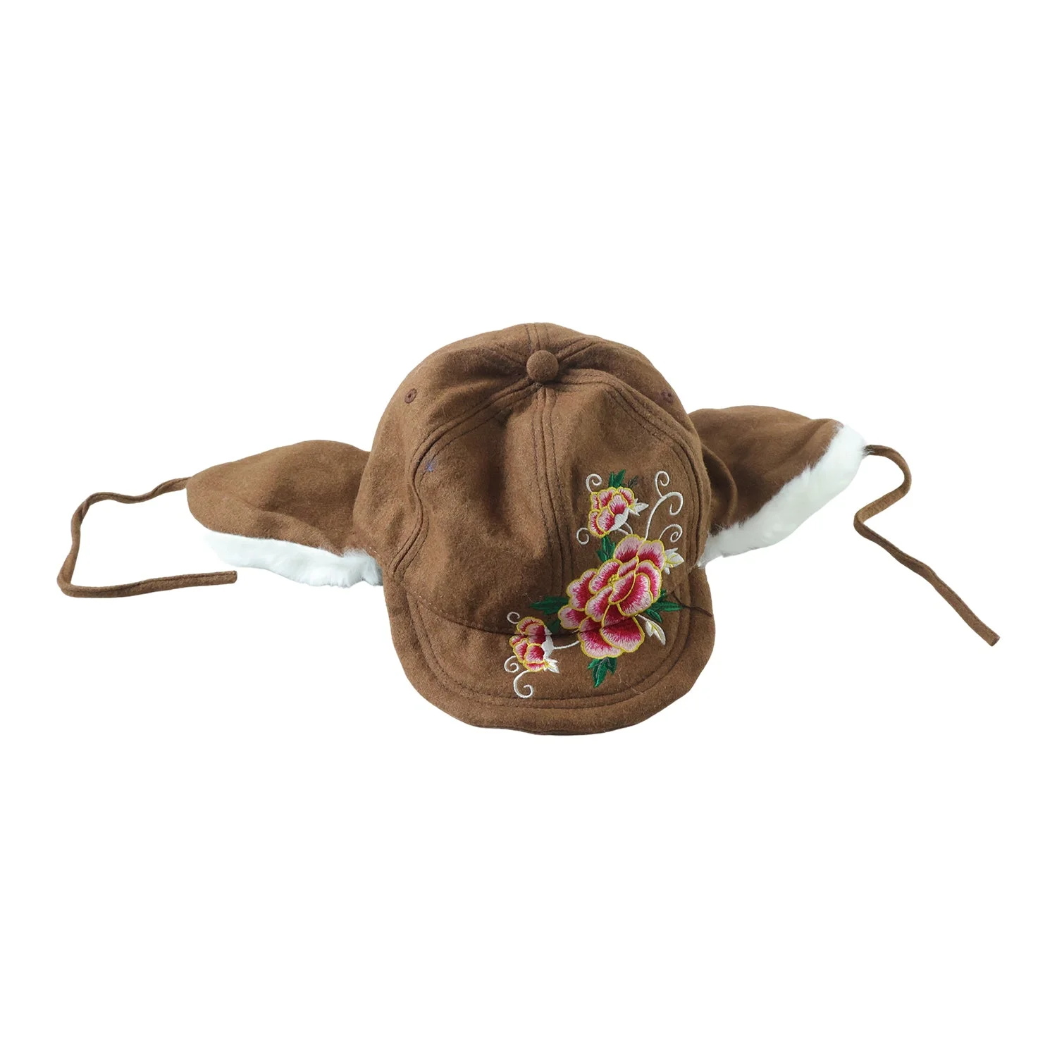 Premium Winter Ear Flap Cap for Women 1 Pc – Soft Fur Lined Warm Hat with Floral Embroidery Stylish Cold Weather Outdoor Cap with Adjustable Tie Strings