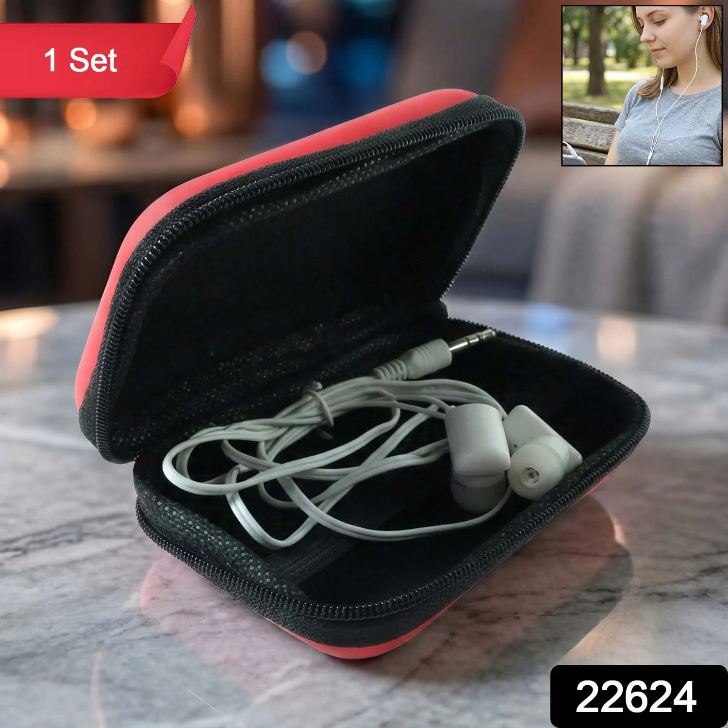 Premium Wired Earphone with Protective Hard Shell Zipper Carry Case Set for Clear Sound Comfortable Fit and Travel-Friendly Storage 1 Set