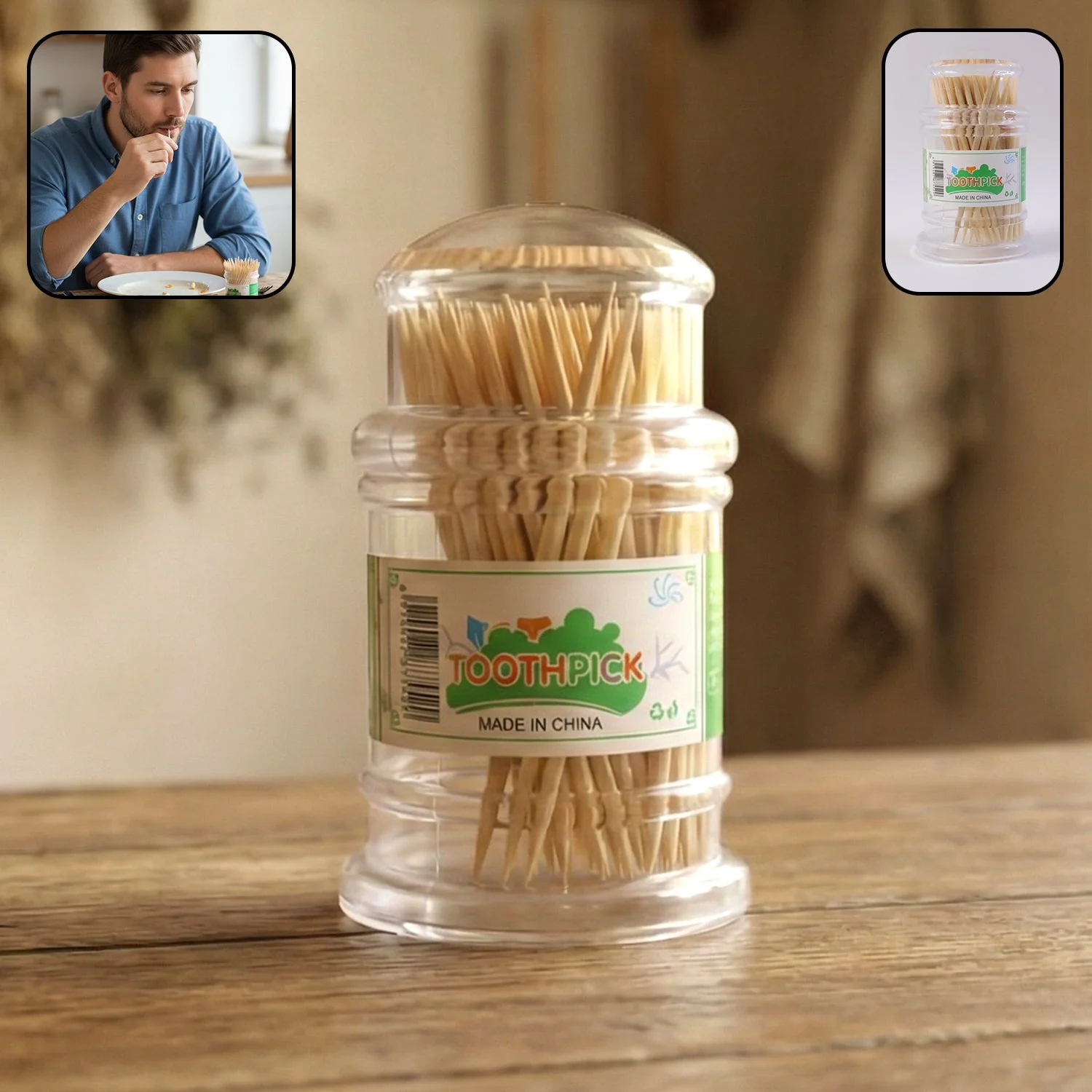 Premium Wooden Toothpick Jar Pack with Transparent Storage Container Hygienic Disposable Tooth Picks for Home Restaurant Hotel and Party Use (1 Set)