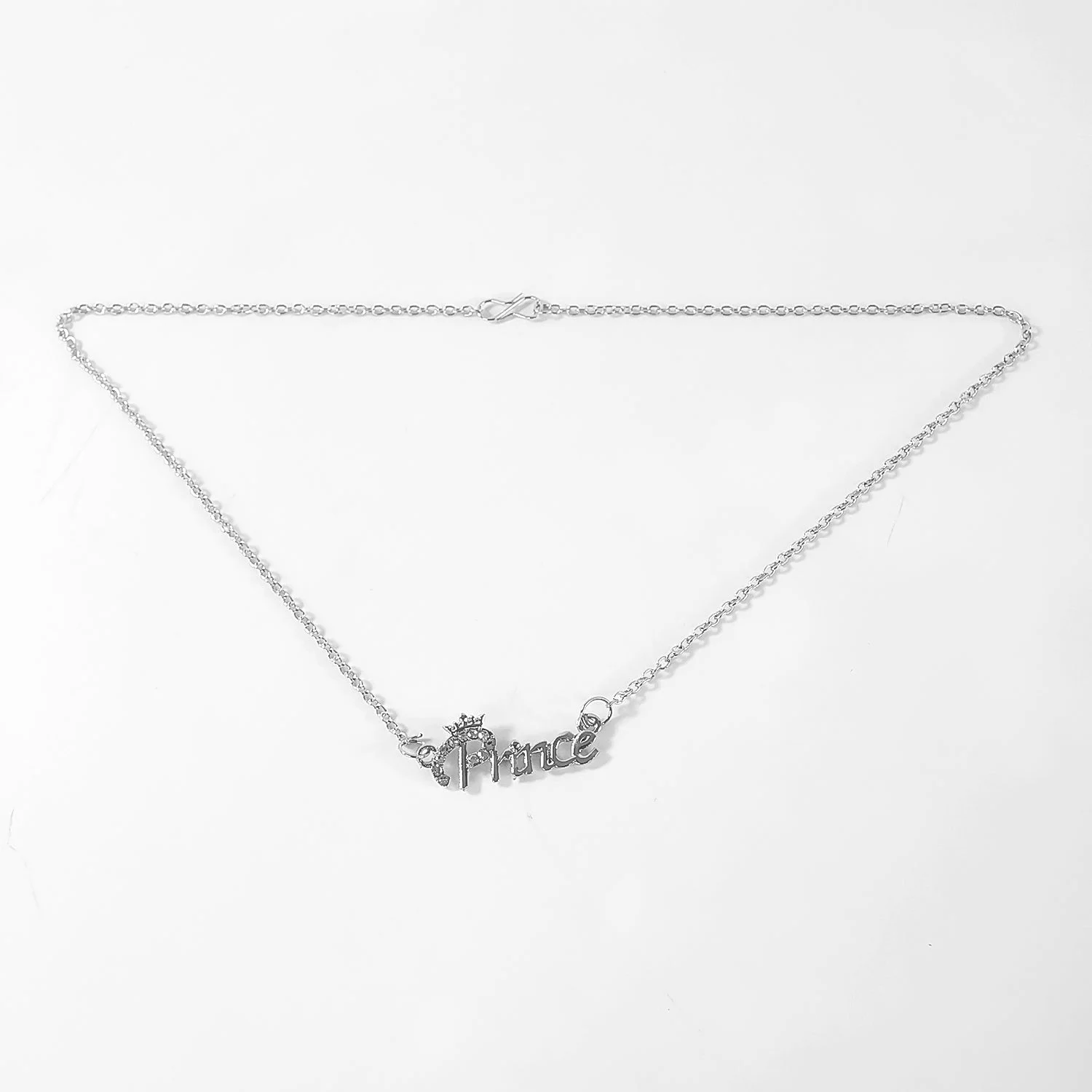 Silver Color Fancy & Stylish Trending Valentine's Day Special Metal Stainless Steel Prince Name Letter Locket Pendant Necklace With Chain For Men's And Boy's Gift Jewellery Set 1Pc