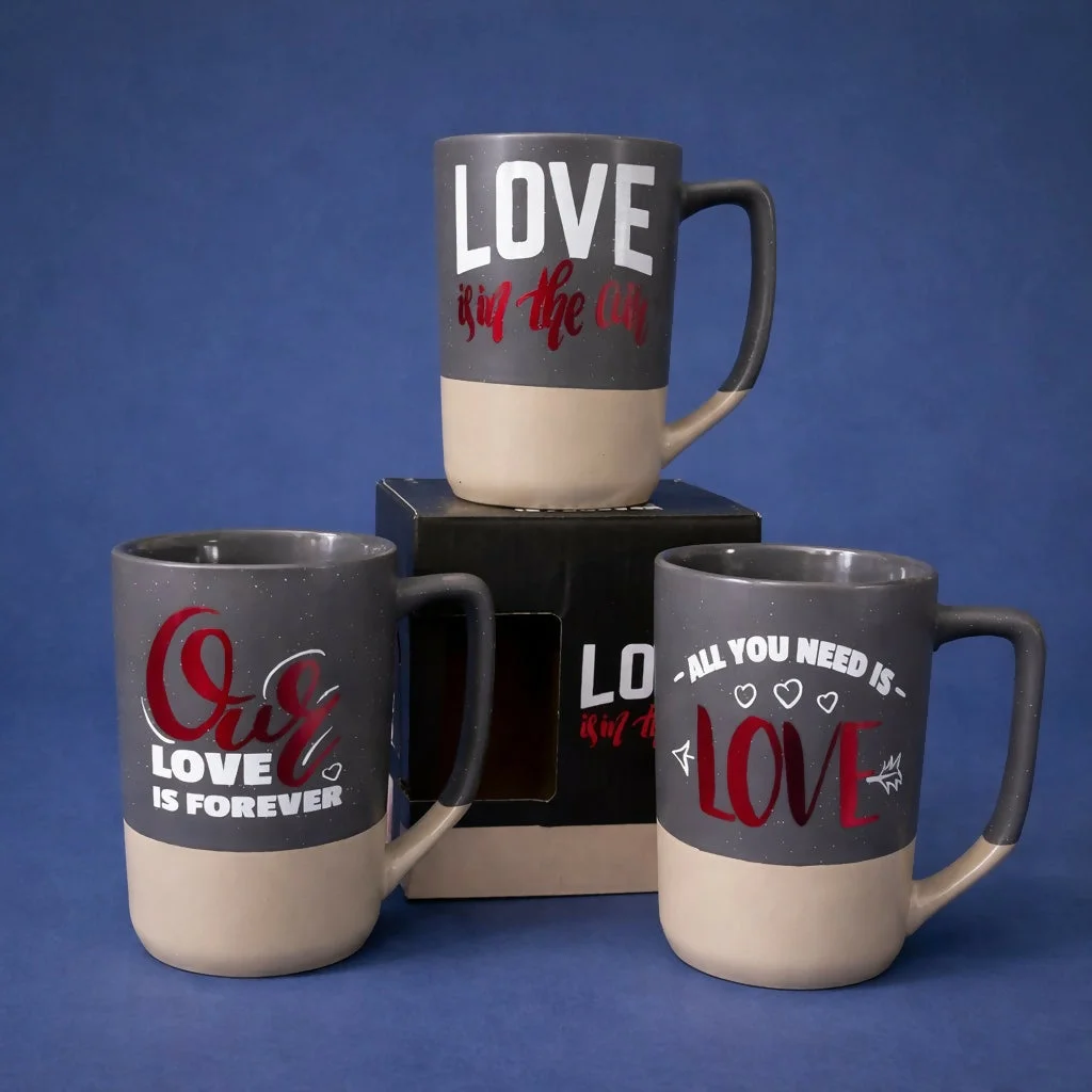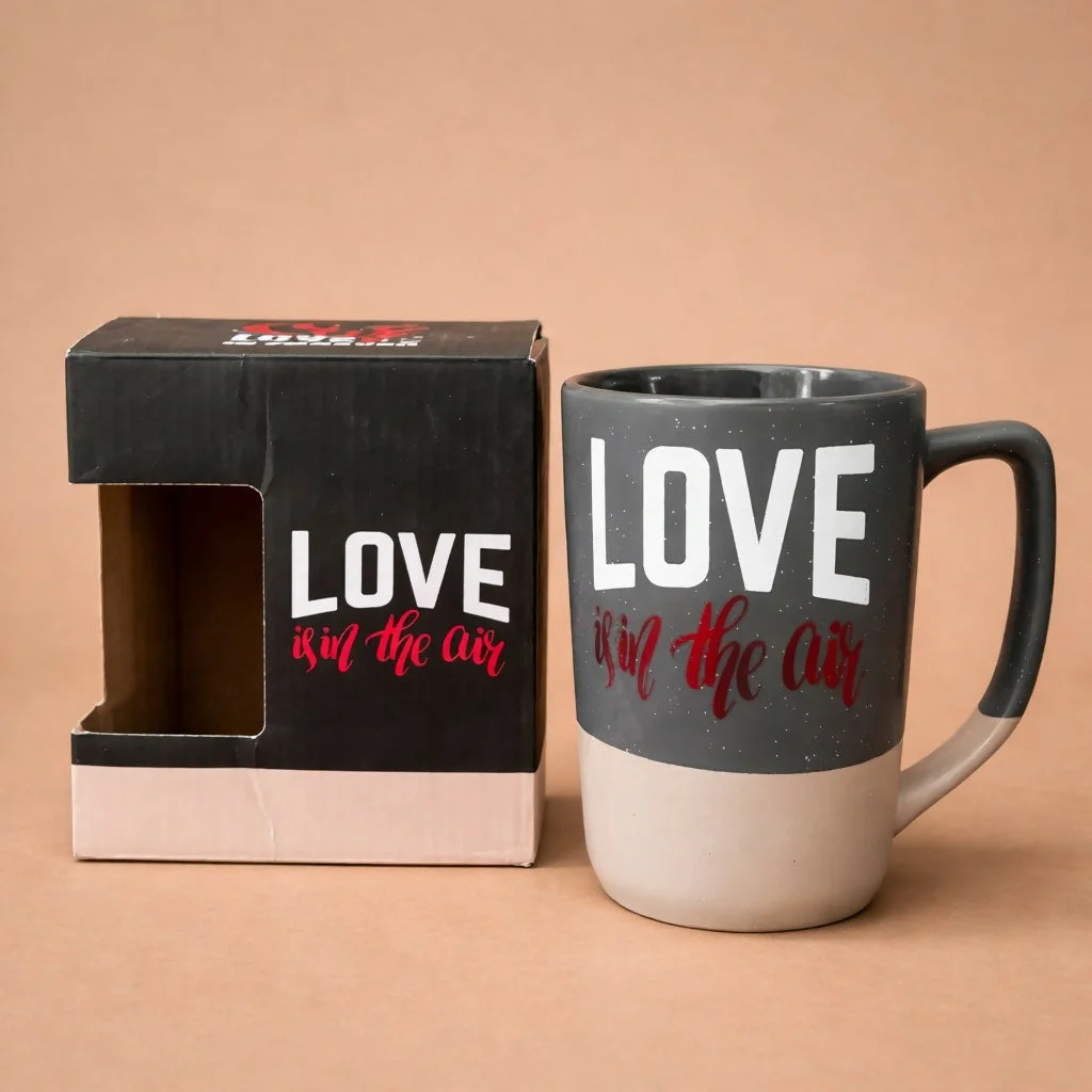 Enjoy your favorite beverages with this stylish ceramic mug featuring a romantic “Love is in the Air” print. Designed with a modern dual-tone finish and a comfortable handle, this mug is perfect for daily use at home or office. Its durable build and attractive design make it a great gifting option for special occasions like anniversaries, birthdays, or Valentine’s Day. A perfect blend of functionality and emotional expression in one elegant mug.
