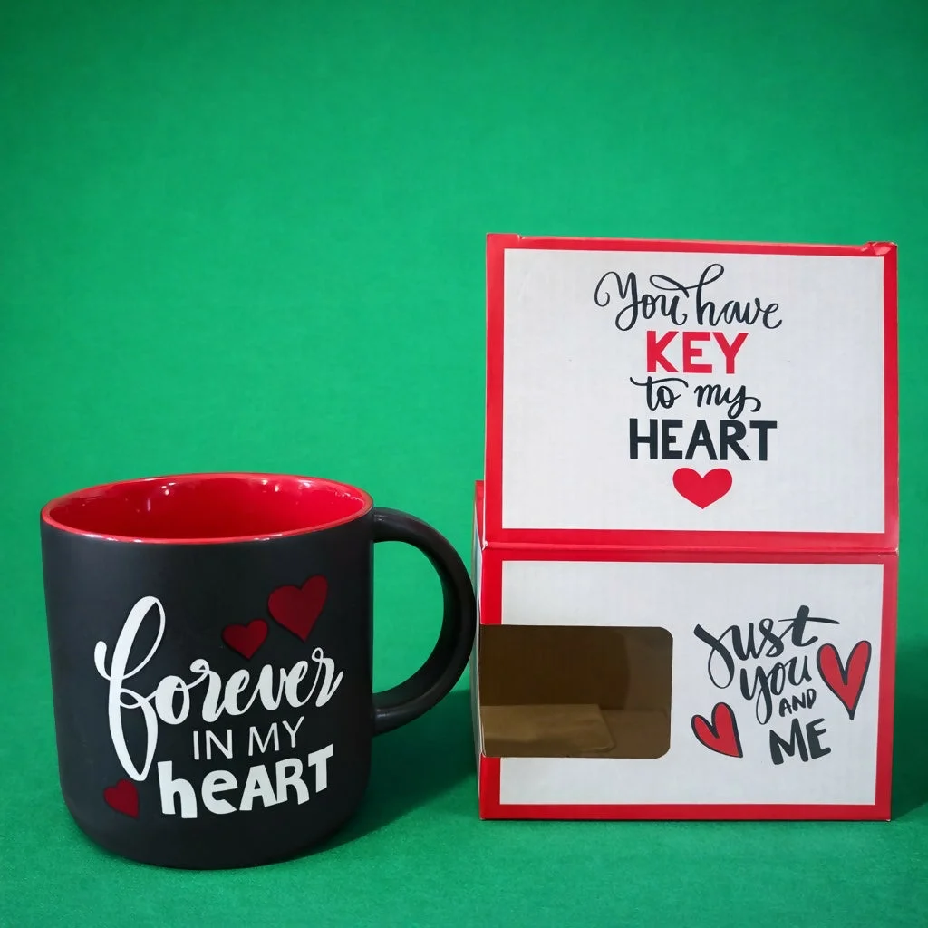 Celebrate love with this beautifully designed ceramic coffee mug featuring a heartfelt “Forever in My Heart” print. Paired with an attractive matching gift box, this mug makes a perfect present for your loved ones. Crafted with a smooth finish and comfortable grip, it is ideal for enjoying coffee, tea, or any beverage. Whether for daily use or special occasions, this mug adds warmth, style, and emotion to every sip.