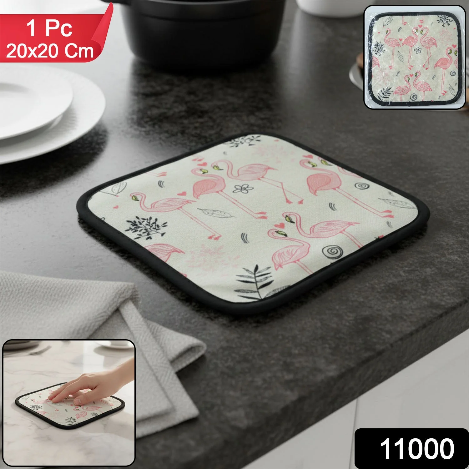 1 Pc Printed Kitchen Pot Holder Mat 20×20 Cm – Heat Resistant Hot Pot Stand, Table & Counter Protection Pad for Kitchen Use