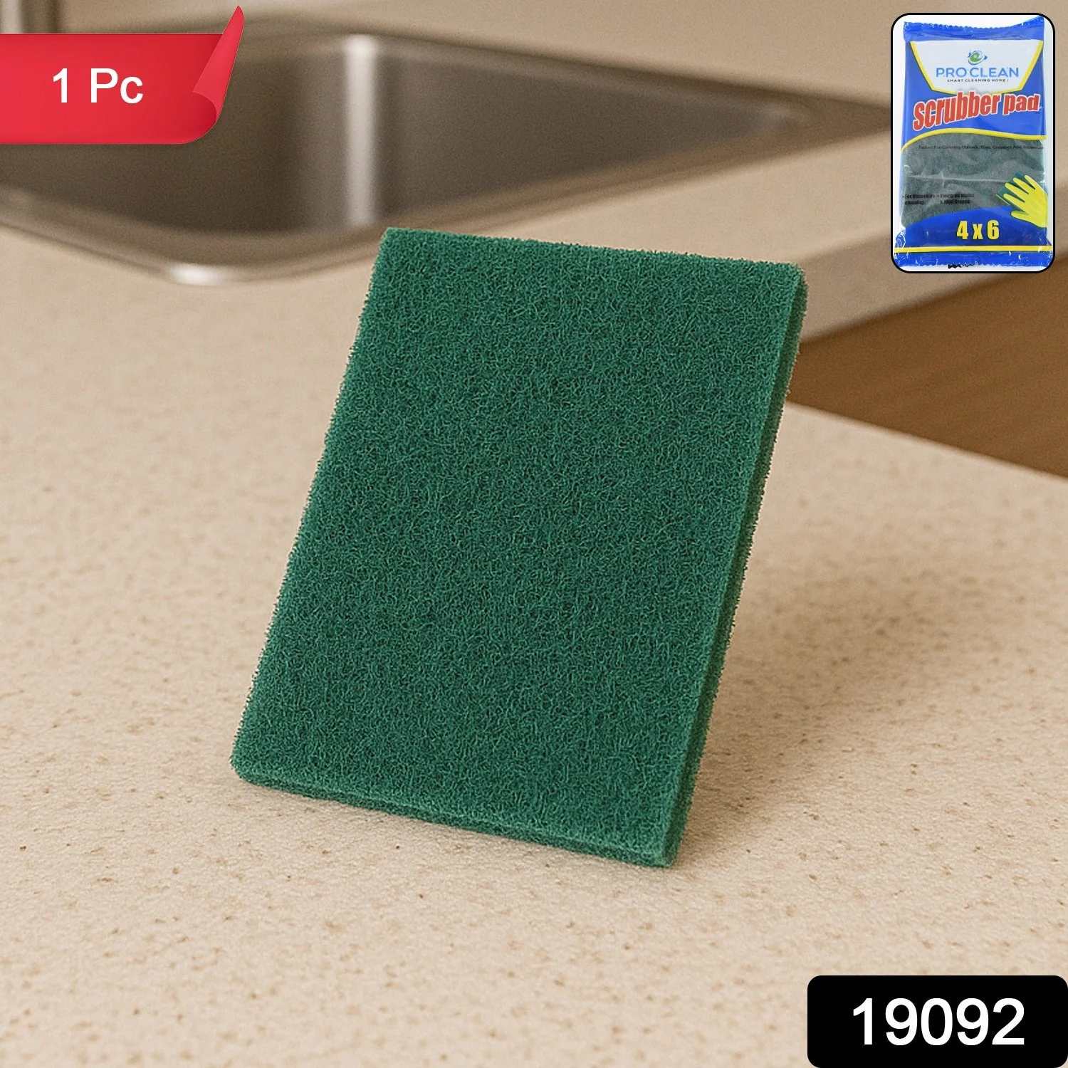Heavy-Duty Kitchen Scrubber Pad – 4x6 inch Multipurpose Green Cleaning Pad for Utensils, Cookware & Surfaces (1 Pc)