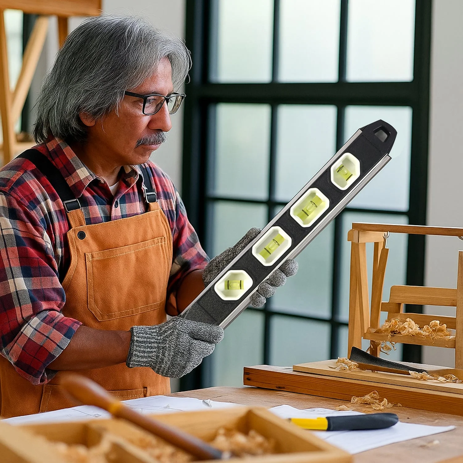 Professional Aluminum Spirit Level Measuring Tool – Heavy-Duty 3 Bubble Vial Level Gauge for Construction, Carpentry, and Home Alignment Work