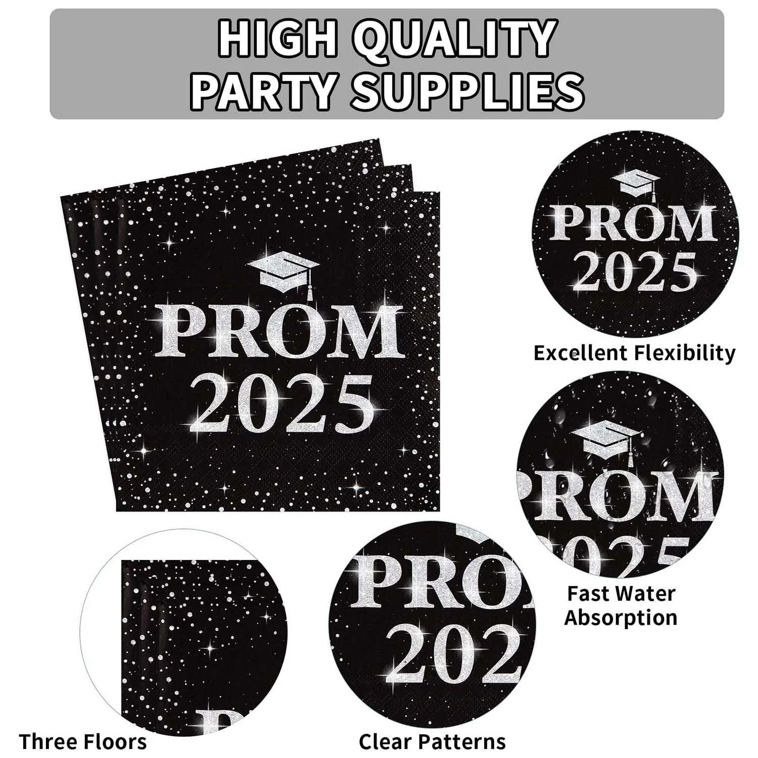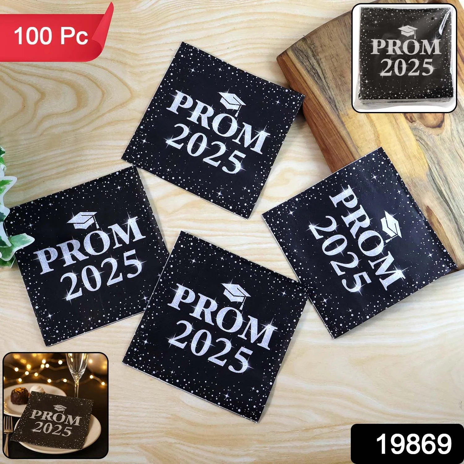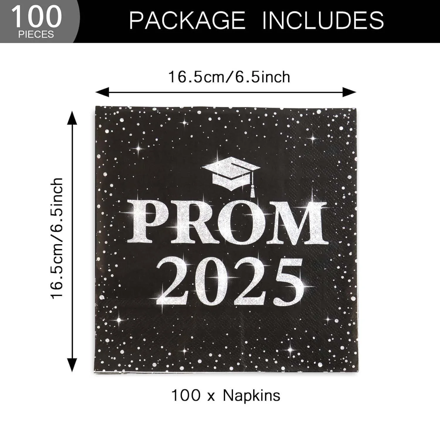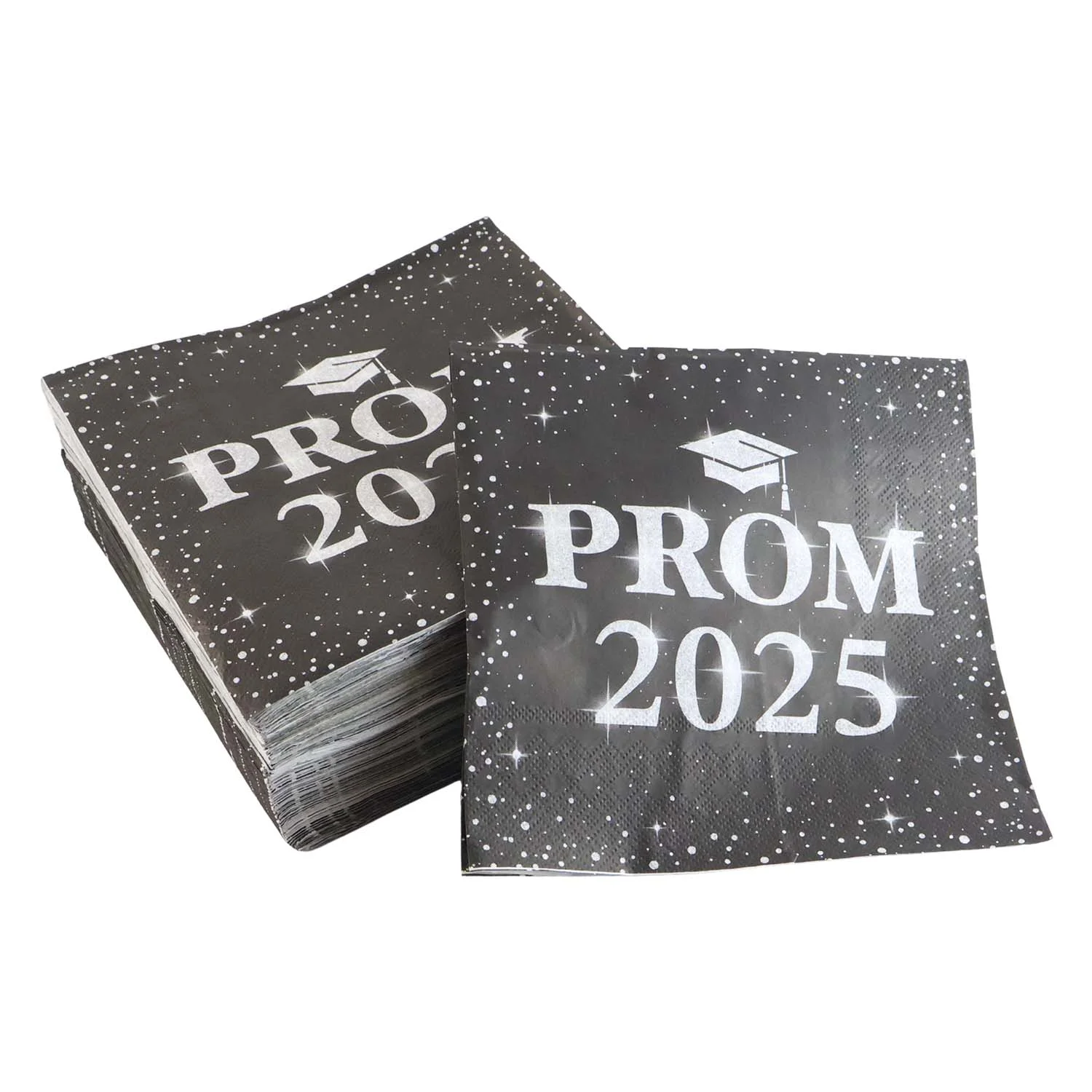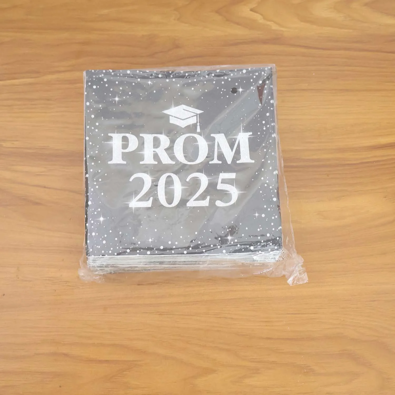 Prom 2025 Party Napkins – Decorative Disposable Paper Napkins for Graduation, Events, and Celebration Parties (33 x 33 Cm / 100 Pcs)