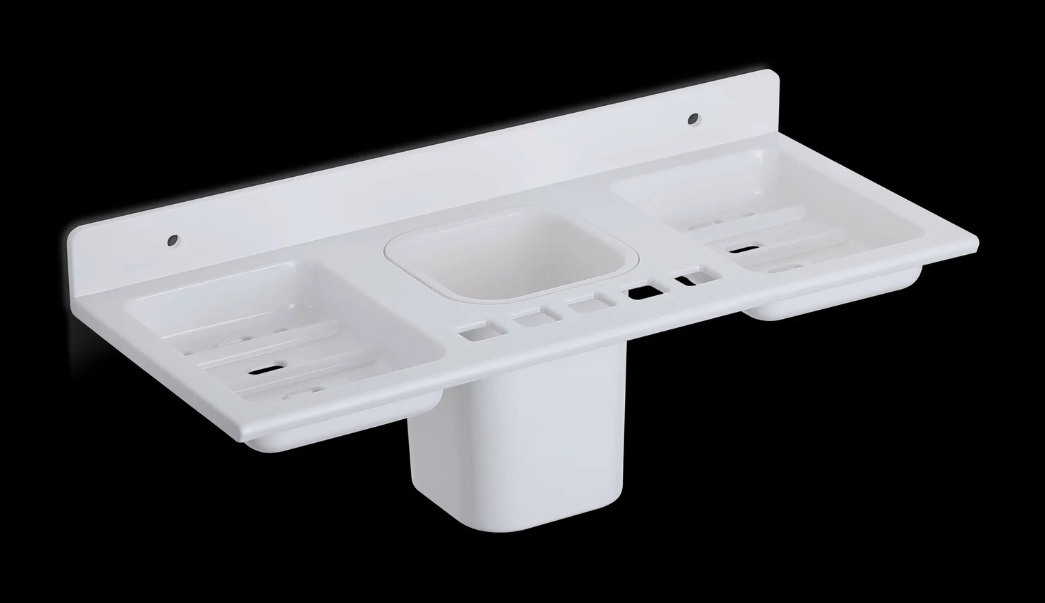 Bathroom 4 in 1 Soap Dish Stand with Toothbrush Holder, Paste and Brush Tumbler Holder Make your bathroom a more convenient space with the Double Soap Dish . The soap dish is designed with mounting holes and comes with screws which makes installing it on a wall