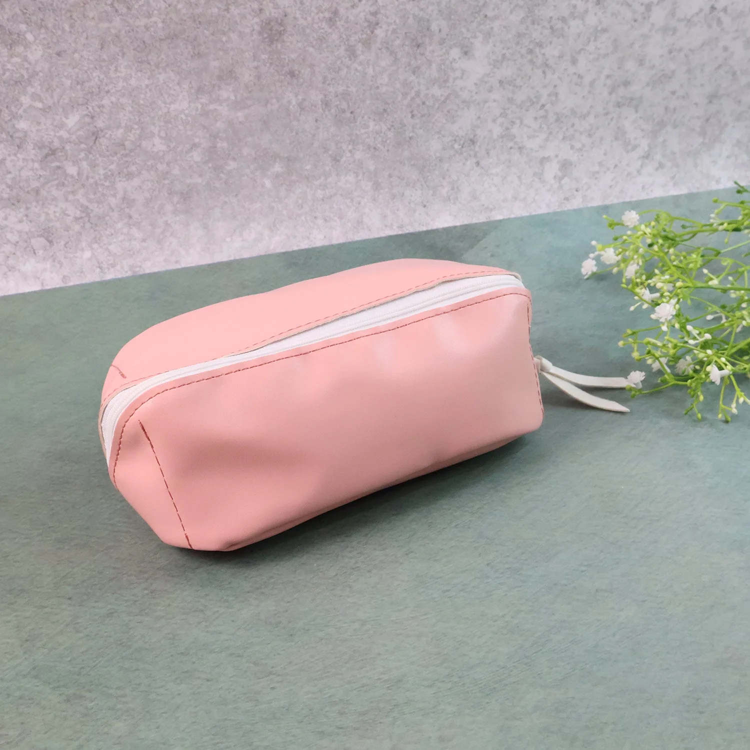 Keep your daily essentials neat and easy to find. This elegant zip-top pouch is crafted from soft PU leather with a wipe-clean, water-resistant lining. The wide, rectangular base lets the pouch stand on its own while you work, and the inner slip pocket separates small items like lip balm, USB, or clips. Compact enough for your handbag yet spacious for brushes, cosmetics, pens, cables and more—perfect for office, college, and travel.