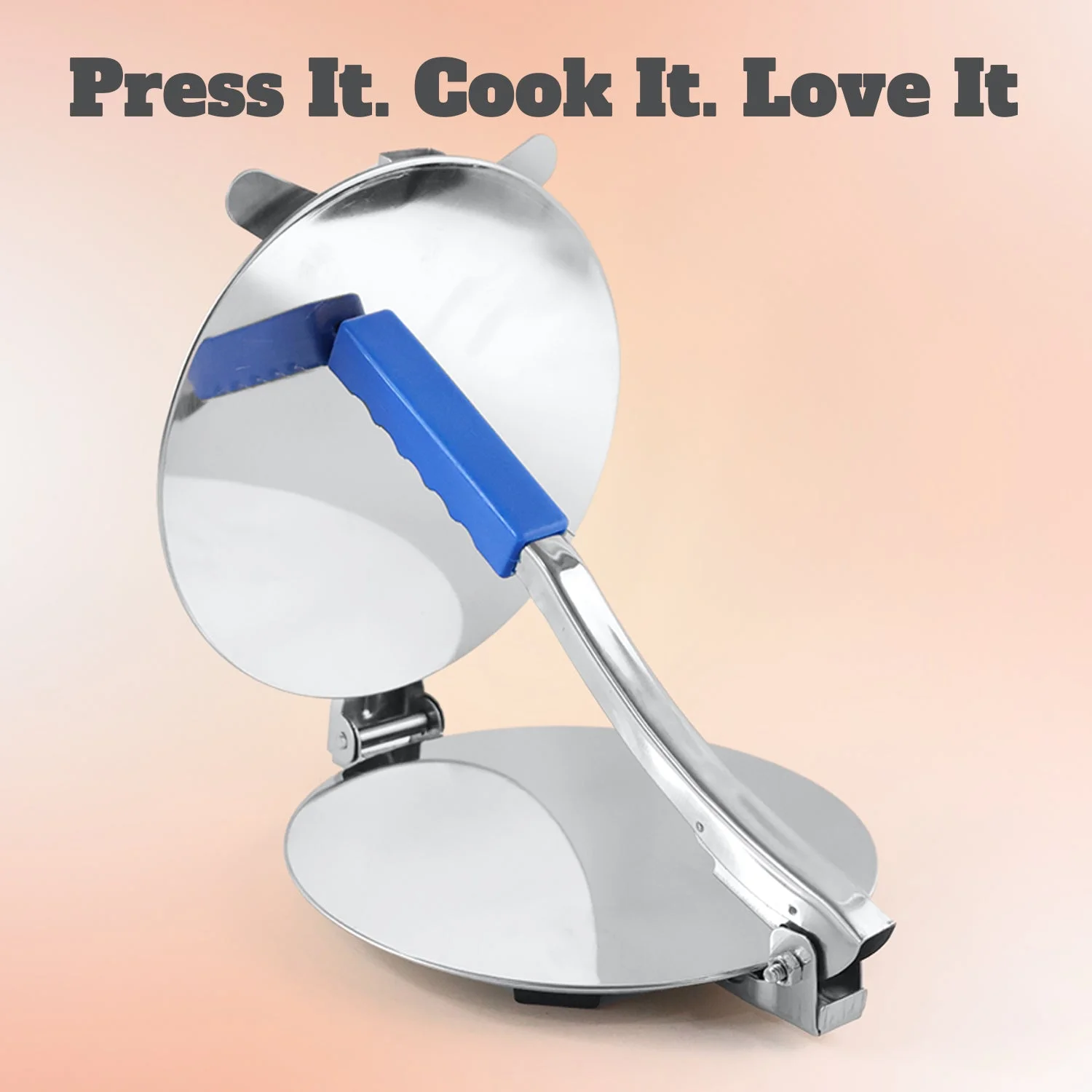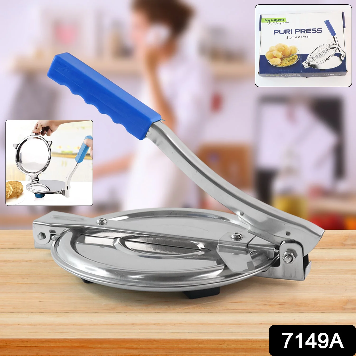 7149A PURI PRESS MAKER - STAINLESS STEEL PURI MAKER PRESS MACHINE - ROTI CHAPATI PRESSER FOR HOME -KHAKHRA- PURI MAKER PRESS MACHINE WITH HANDLE, MANUAL PURI MAKER (MEDIUM)