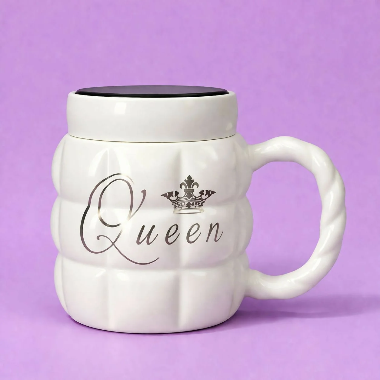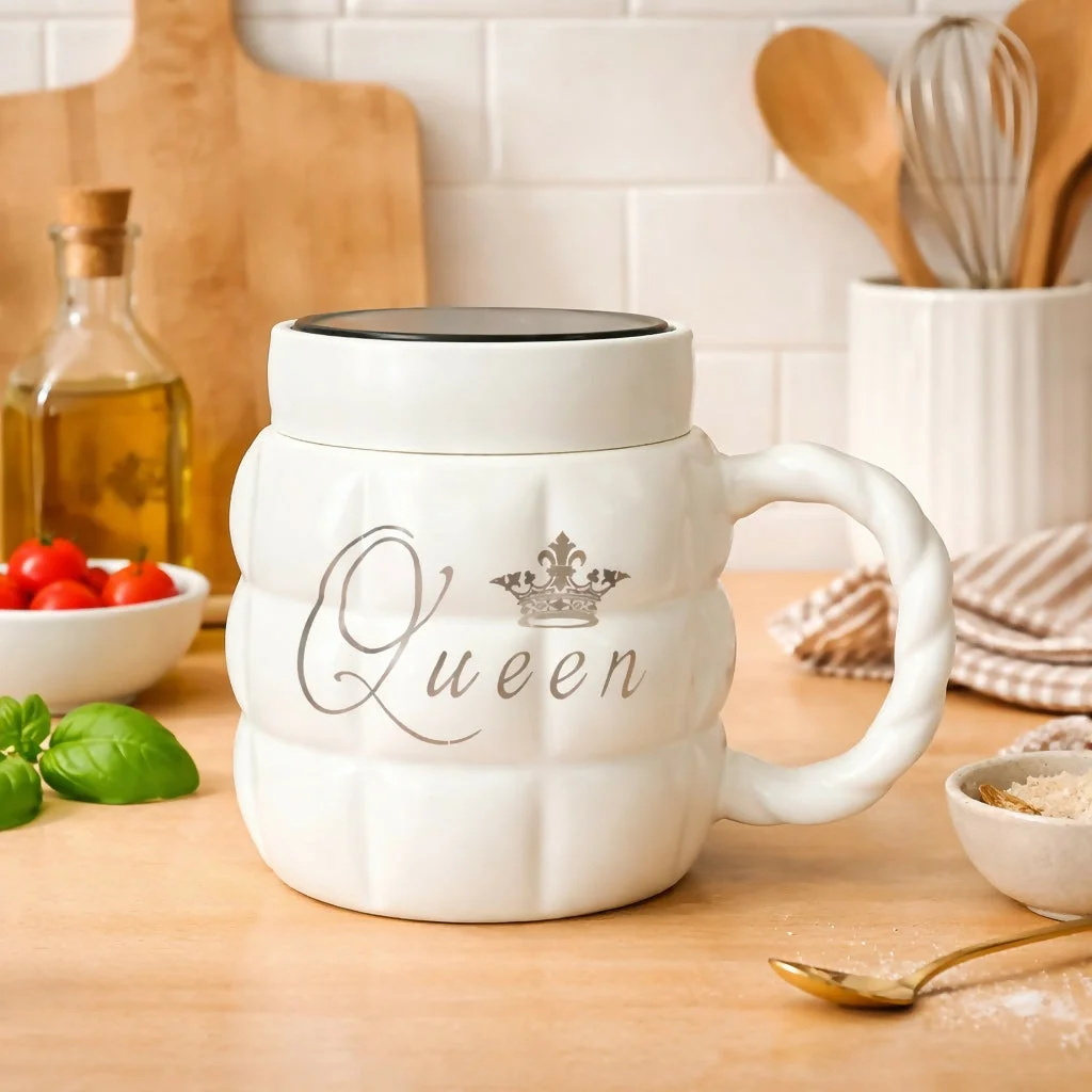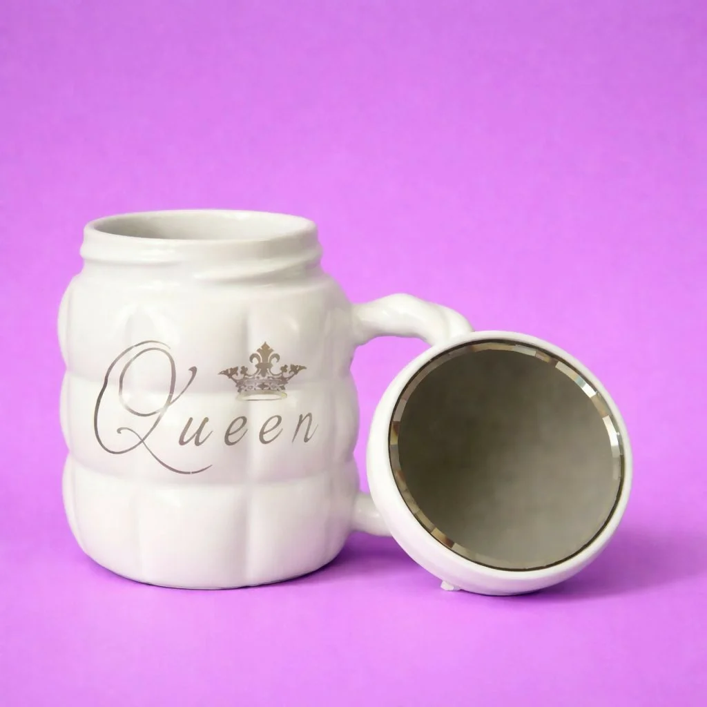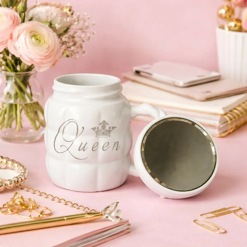 Enjoy your favorite beverages in style with this elegant “Queen” printed ceramic mug. Designed with a premium finish and a unique lid that doubles as a mirror, this mug combines functionality with modern aesthetics. Perfect for coffee, tea, or any drink, it adds a classy touch to your daily routine. Ideal for home, office, or gifting, this stylish mug is a perfect choice for those who love unique and practical designs.