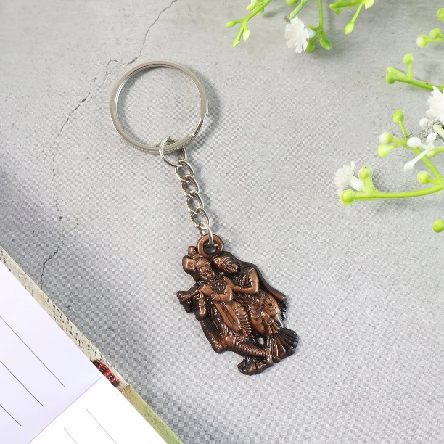 Radha Krishna Metal Keychain – Religious Key Ring for Car, Bike, and Home Keys | Decorative Lord Krishna & Radha Key Chain with Antique Finish (1 Pc)