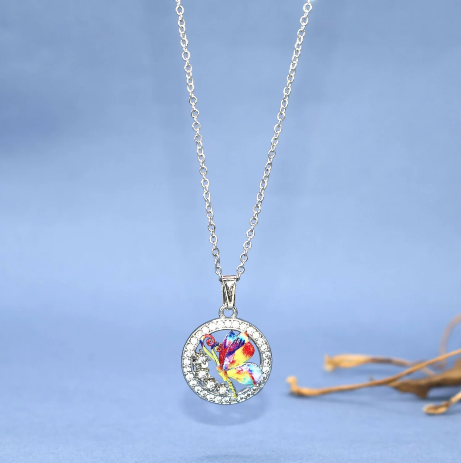 Embrace the beauty of nature and transformation with this eye-catching Rainbow Butterfly Necklace. This exquisite piece features a brightly colored butterfly with wings finished in vivid, multi-colored enamel, capturing the joyful spirit of spring and freedom.