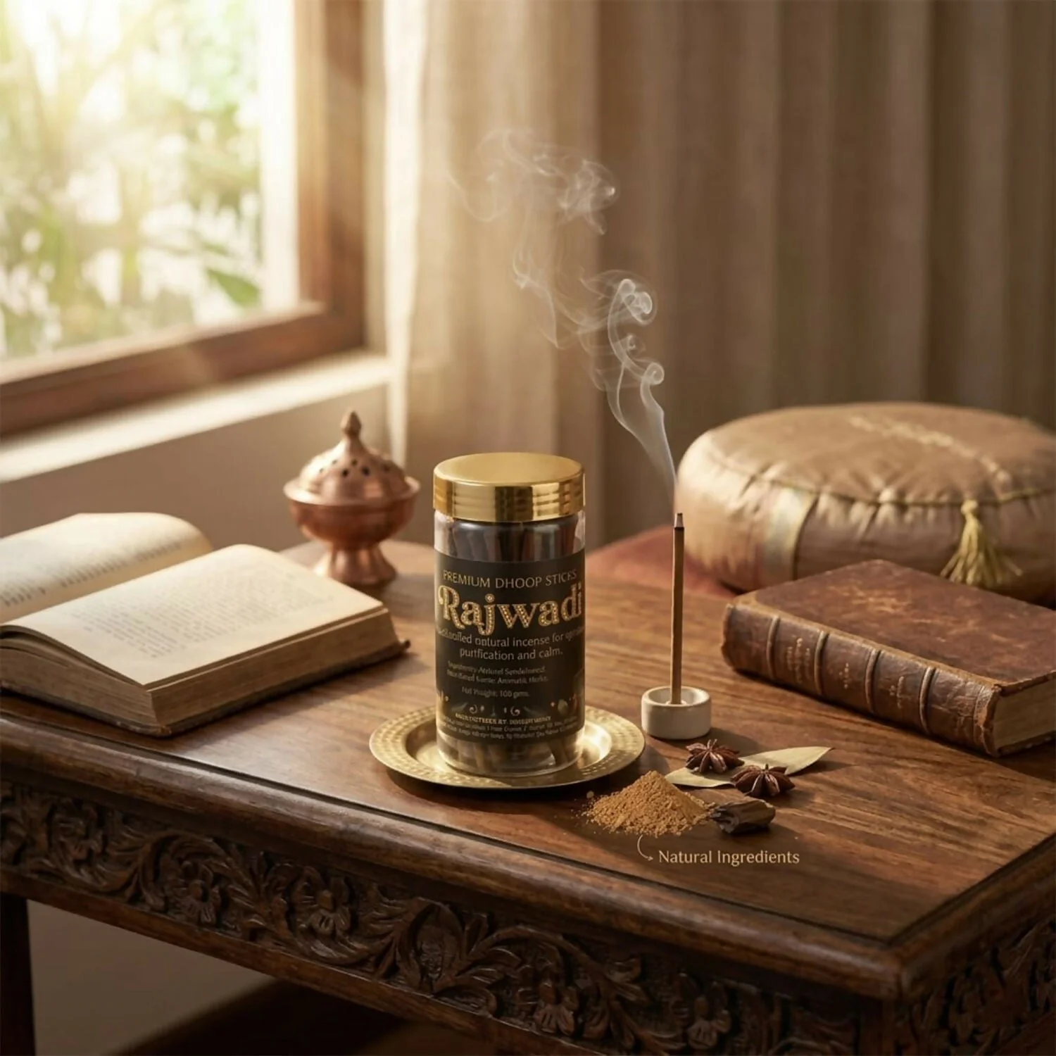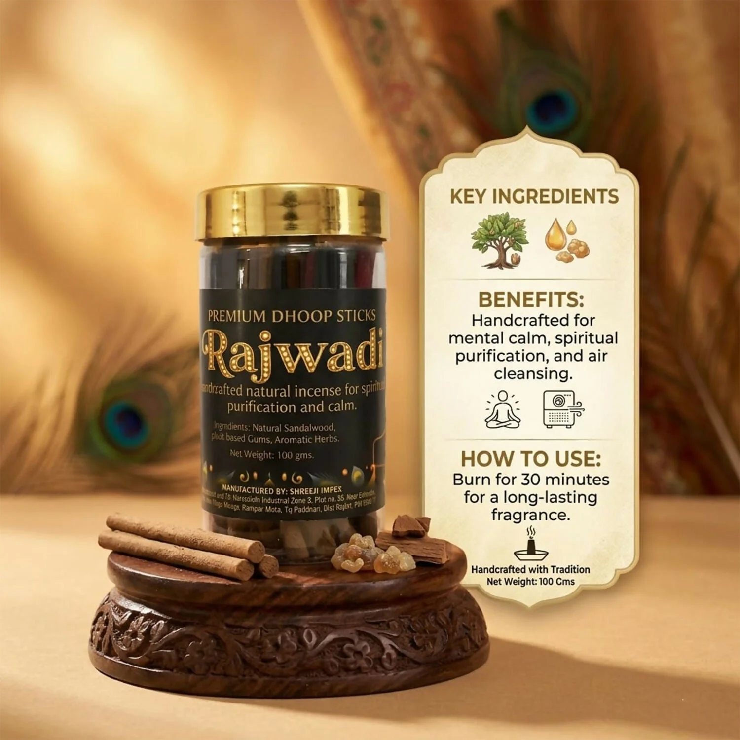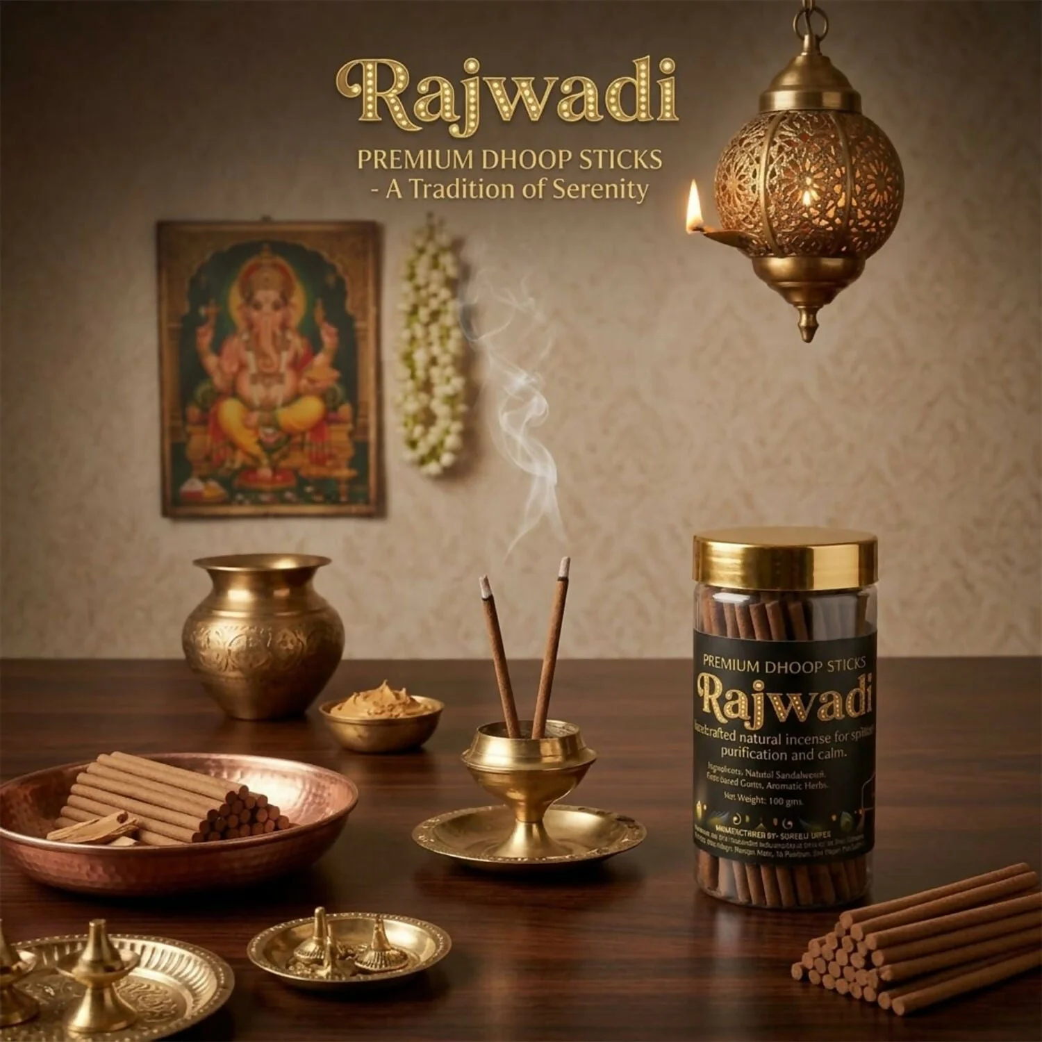 Create a peaceful and refreshing atmosphere with Rajwadi Premium Dhoop Sticks, designed for daily pooja and meditation rituals. Crafted using natural aromatic ingredients, these dhoop sticks release a soothing fragrance that helps purify the surroundings and uplift your mood. Ideal for relaxation, spiritual practices, and enhancing focus, they bring a sense of calm and positivity to your space. Perfect for home, temple, or yoga sessions, these incense sticks offer a long-lasting and pleasant aromatic experience.
