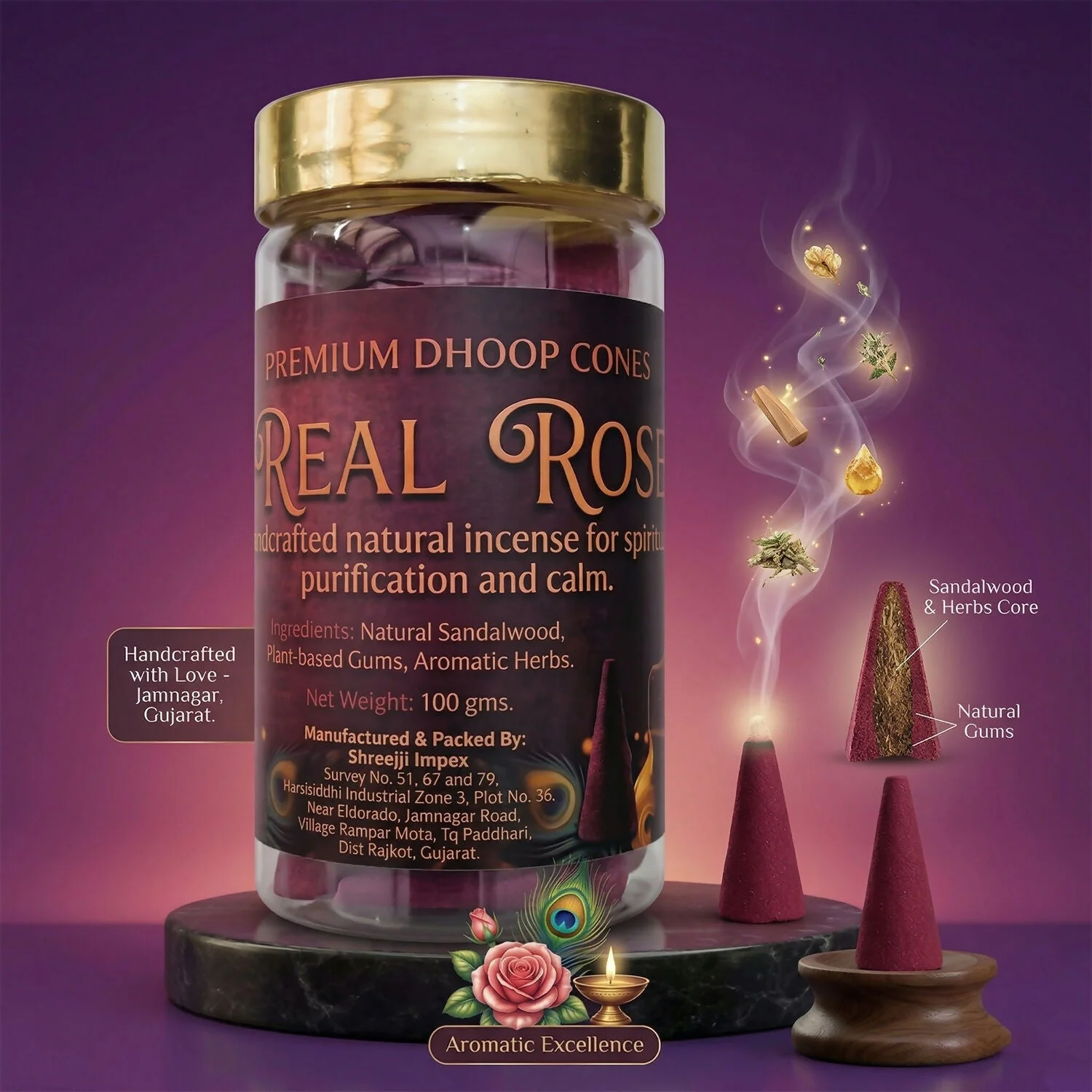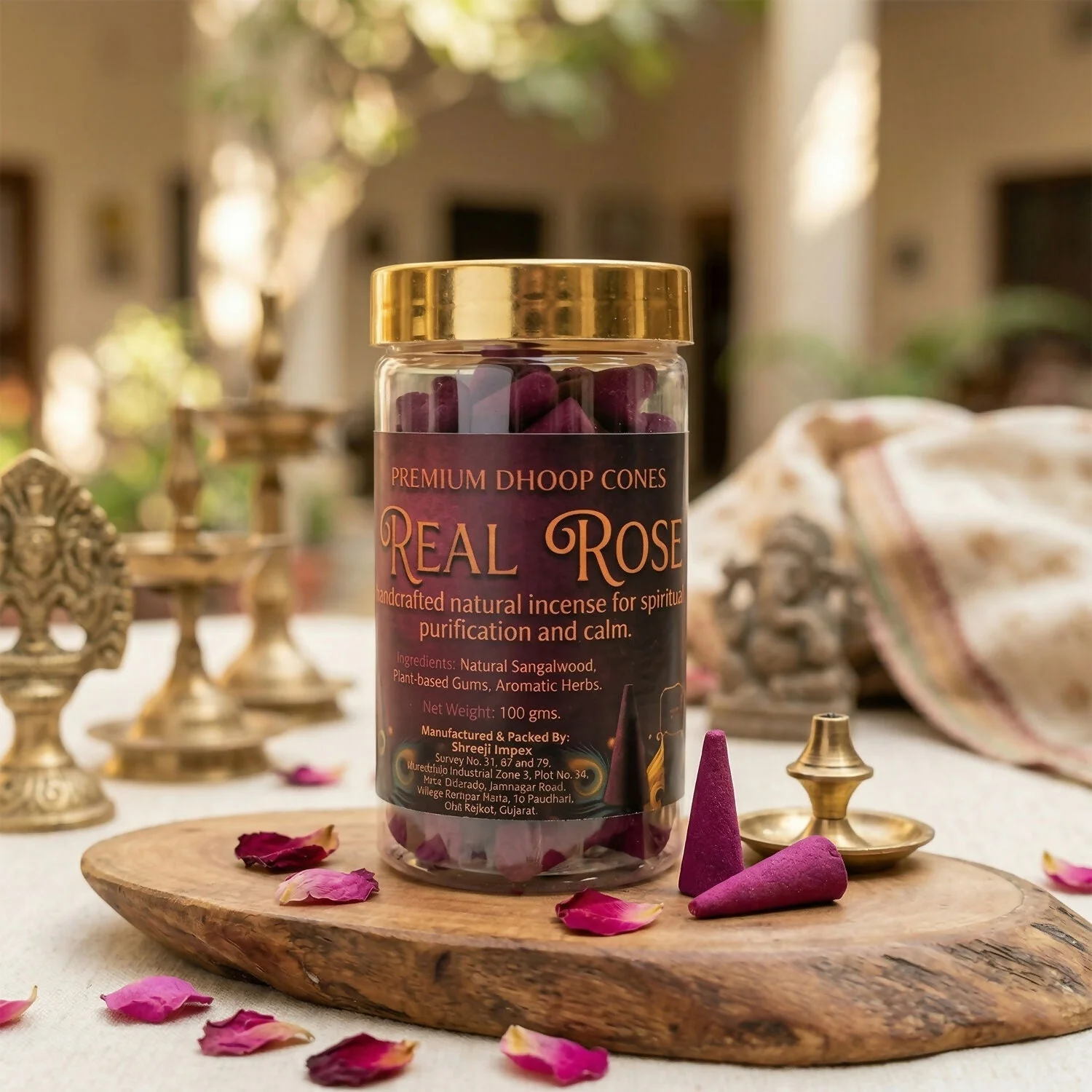 Be the first to review Real Rose Premium Dhoop Cones Natural Incense Cones for Spiritual Purification & Long Lasting Aroma (100Gm)!