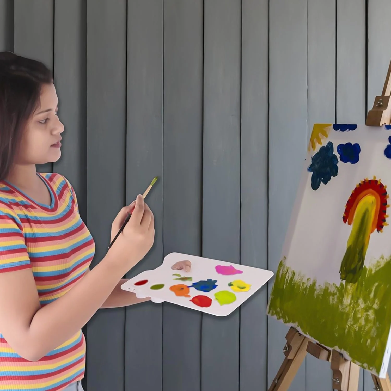 The Khyati Rectangle Oil Painting Palette is designed for artists who value both comfort and precision in their creative process. Crafted in a smooth rectangular shape, it offers a large mixing surface ideal for blending oils and acrylics with ease. The palette includes two detachable dippers for holding mediums or solvents, making it a complete companion for professional painters and art students. Its lightweight design and thumb hole provide excellent grip, allowing you to paint comfortably during long sessions while keeping your colors cleanly organized.