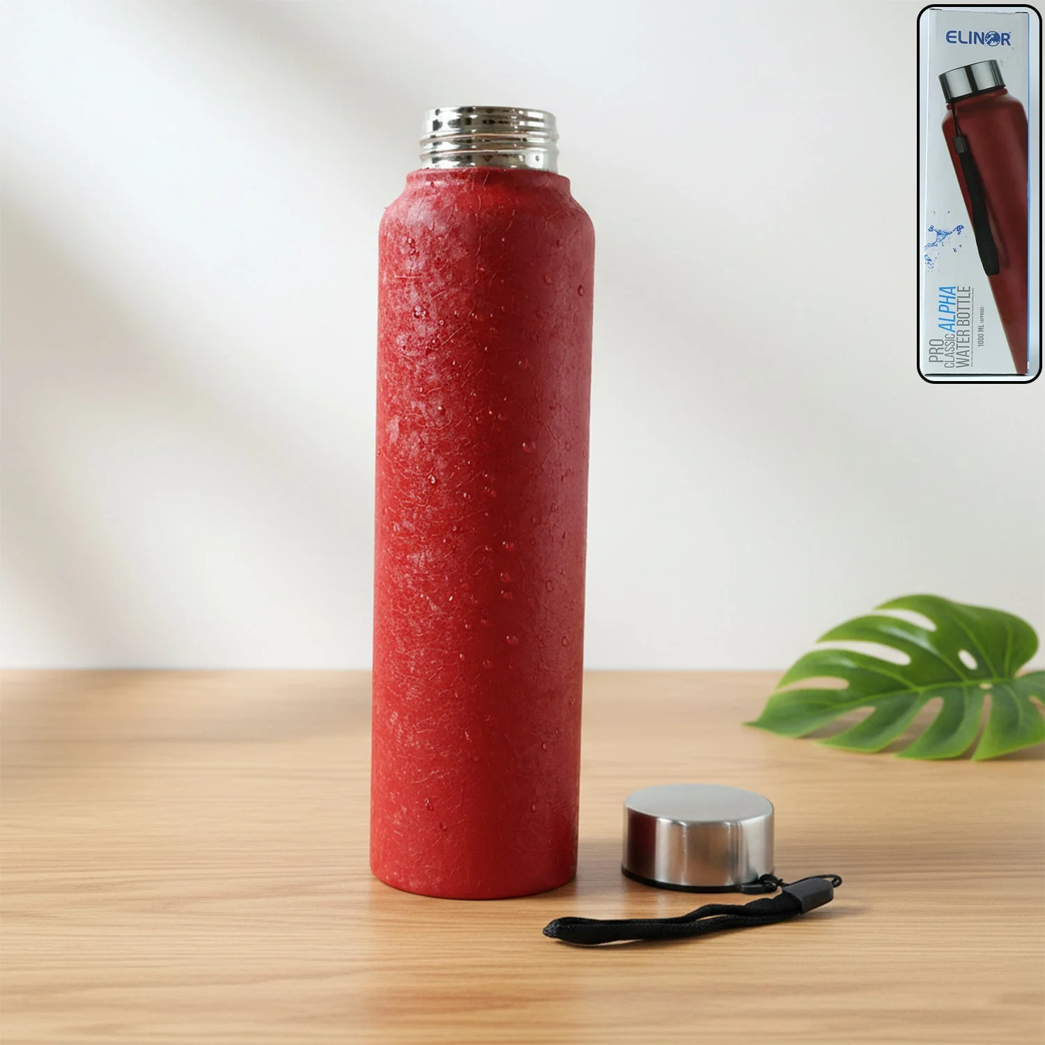 alpha pro classic stainless steel water bottle, 1000 ml stainless steel flask, red water bottle, leakproof screw cap bottle, hot and cold beverage bottle, insulated stainless steel bottle, reusable water bottle, office and travel water flask, gym and outdoor water bottle, durable metal water bottle, multipurpose stainless steel bottle