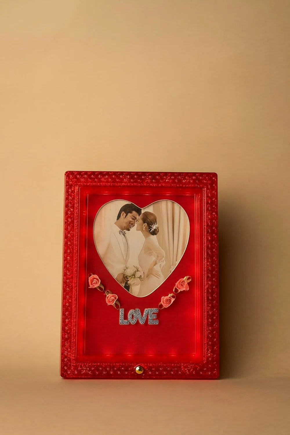 red heart LED lamp, love photo frame night light, couple romantic lamp, customized LED photo frame gift, wedding anniversary lamp, Valentine’s Day special gift, glowing red love lamp, bedside LED couple lamp, heart shape photo frame lamp, personalized night light for couples, romantic home décor lamp.