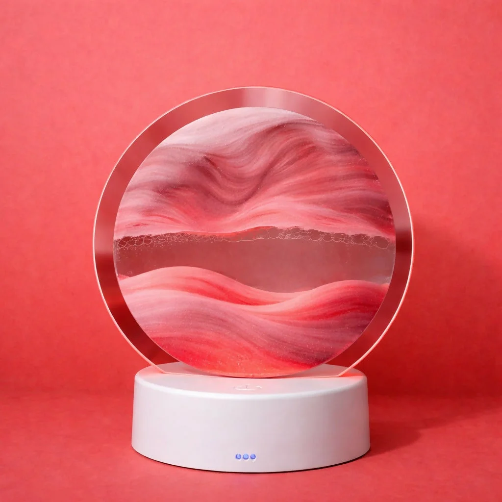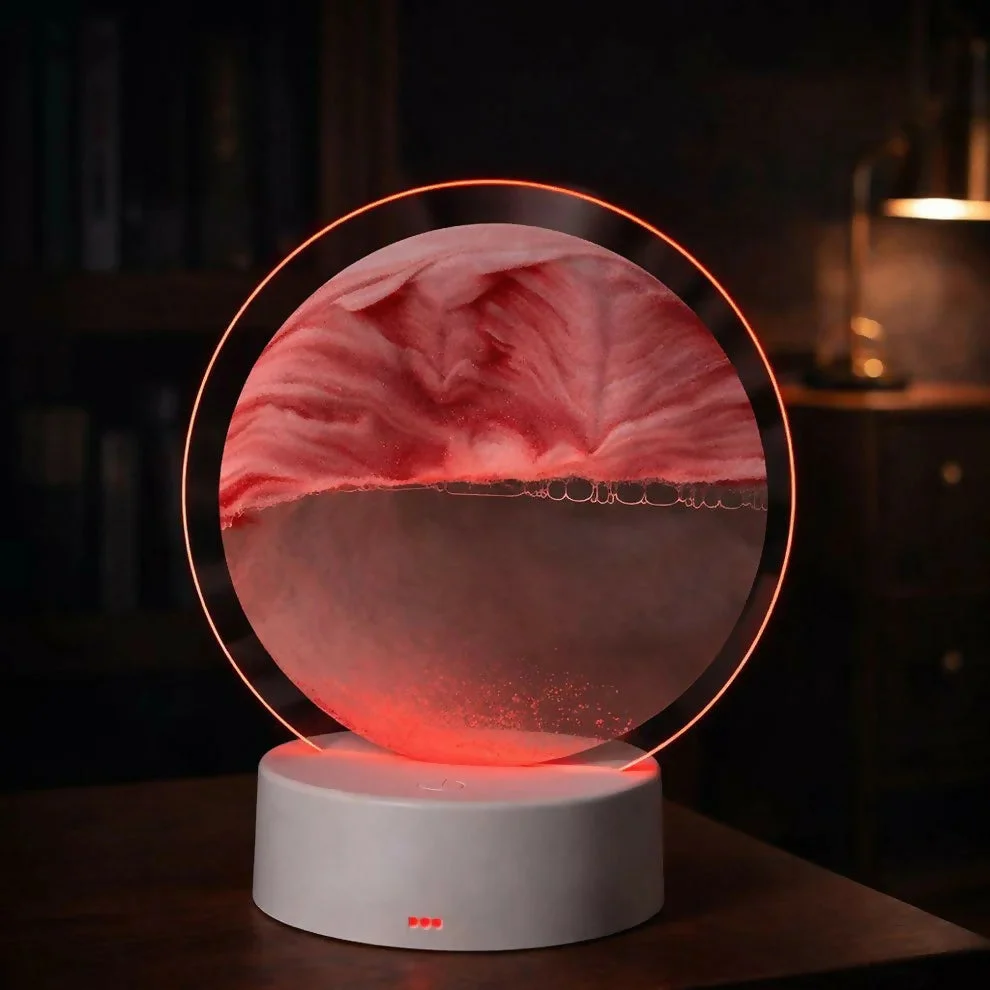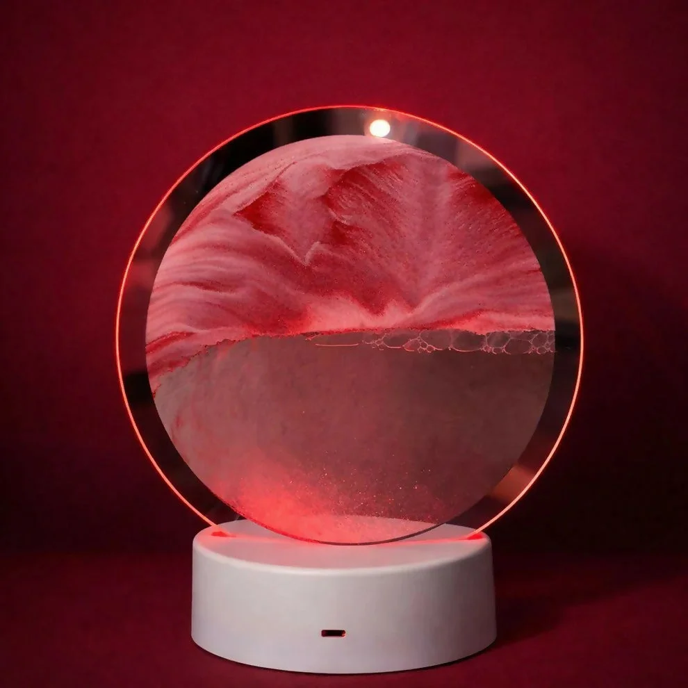 Be the first to review Red Sand Round LED Acrylic Table Lamp with Abstract Art Design!