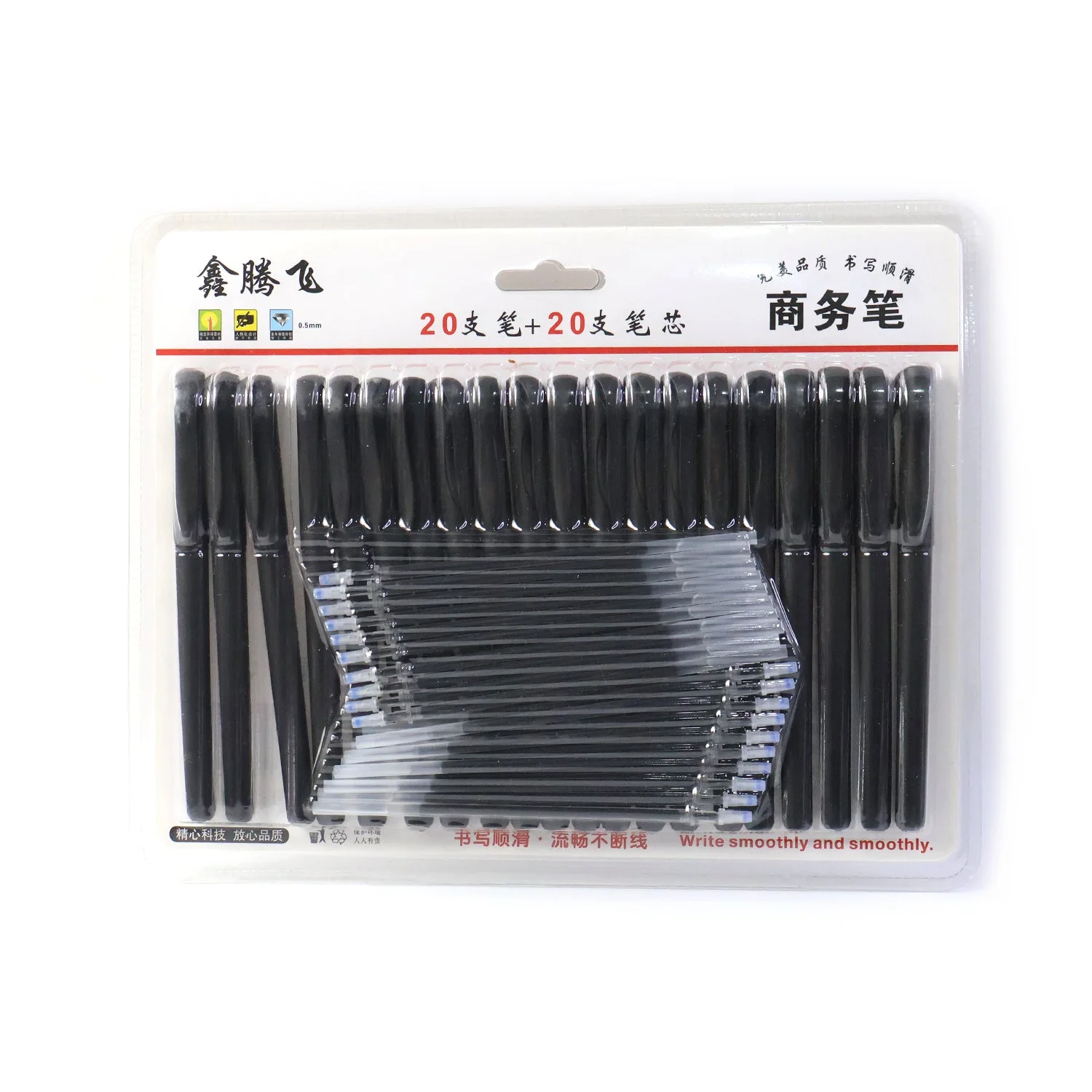 Refillable Black Marker Pen Set with Extra Ink Refills 20 Pieces Smooth Writing Durable Tip for Office School College Teaching Home and Professional Use